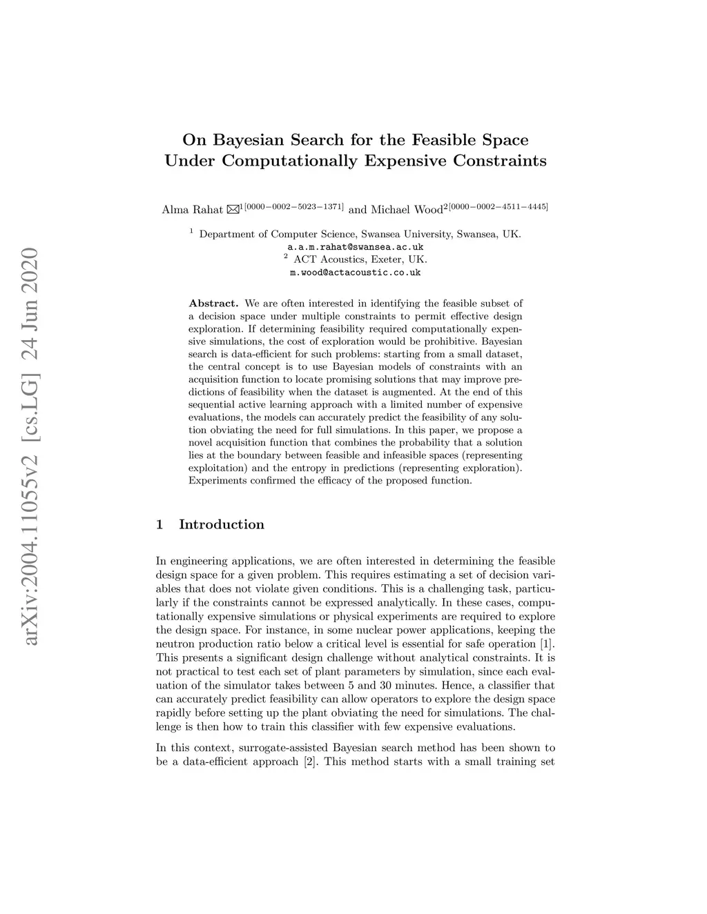 On Bayesian Search for the Feasible Space Under Computationally