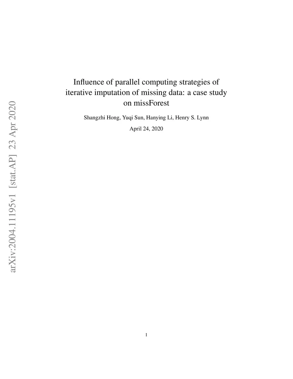 Influence of parallel computing strategies of iterative imputation of