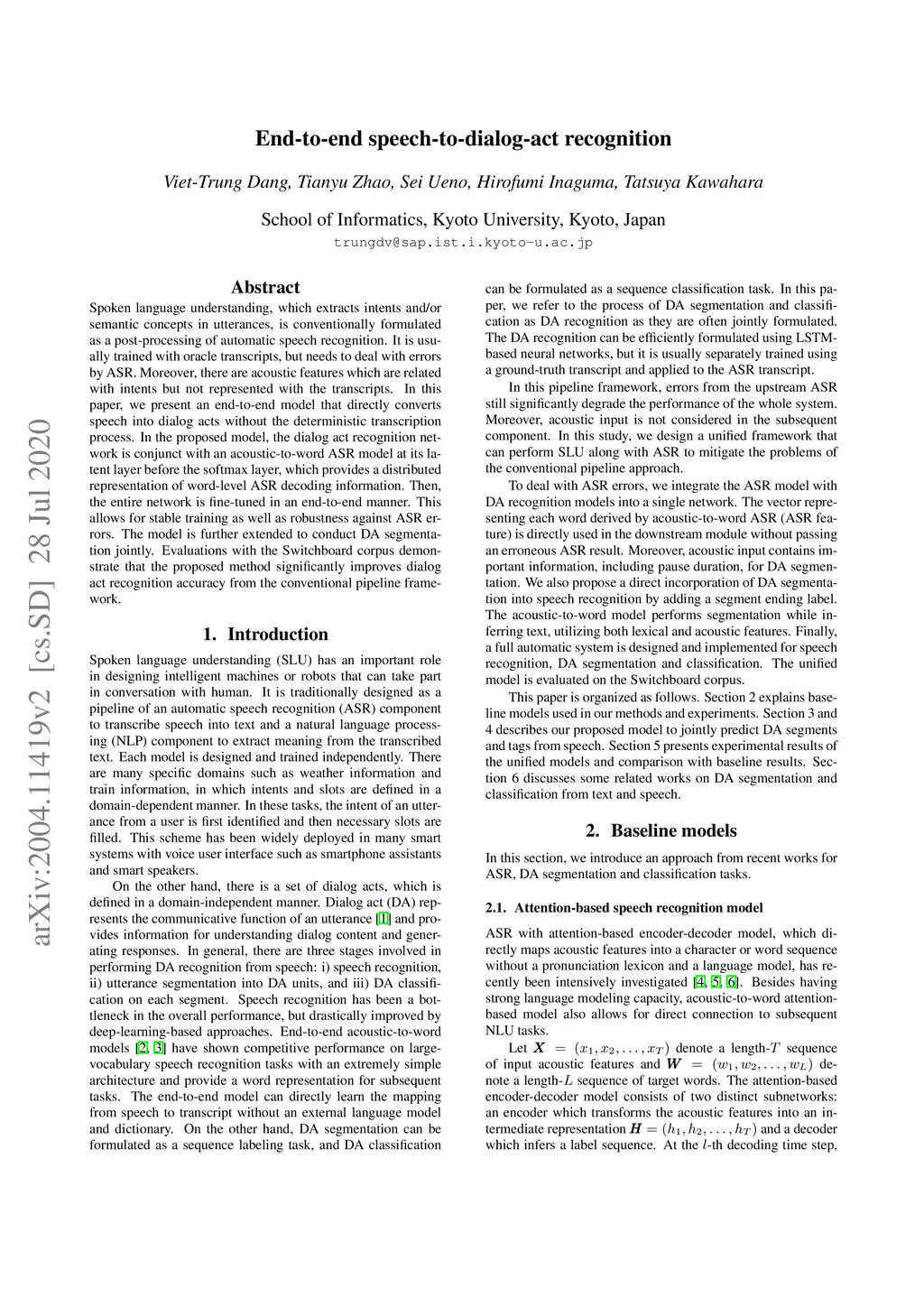 End-to-end speech-to-dialog-act recognition