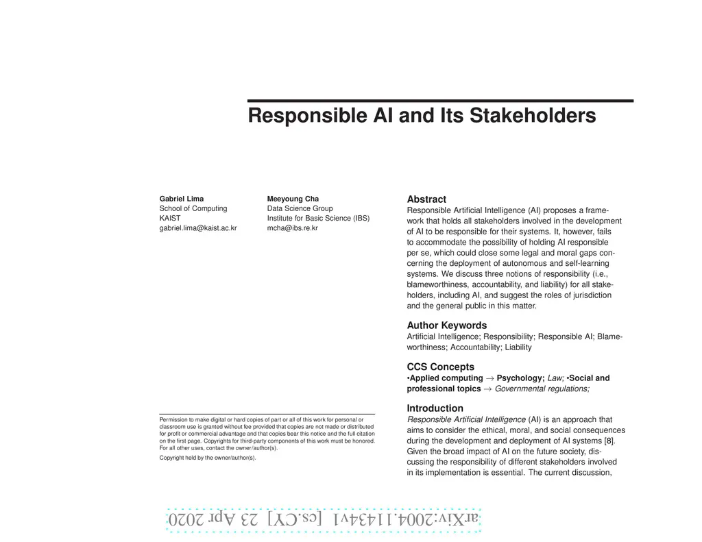 Responsible AI and Its Stakeholders