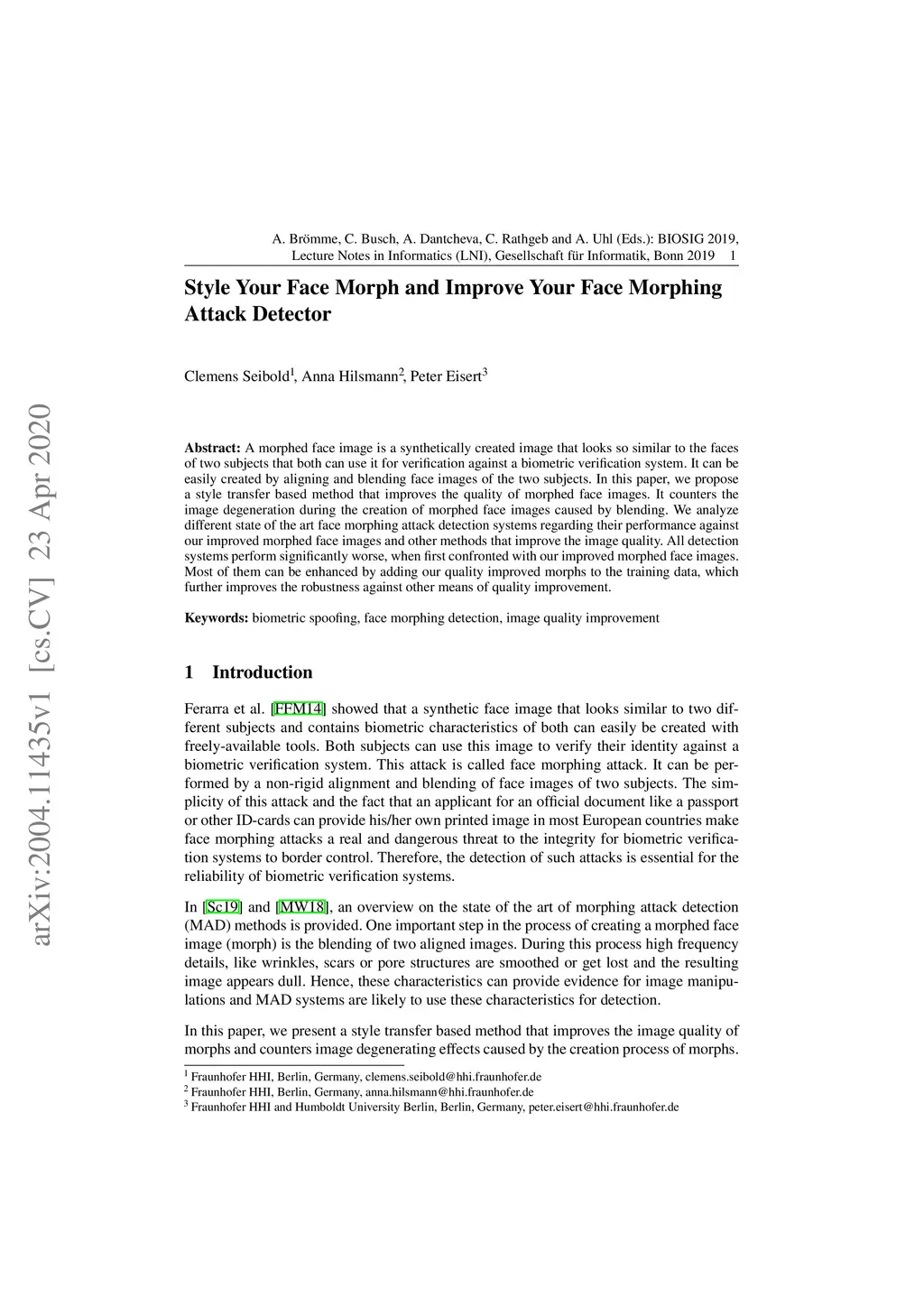 A morphed face image is a synthetically created image that looks so similar to the faces of two subjects that both can use it for verification against a biometric verification system. It can be easily created by aligning and blending face images of the two subjects. In this paper, we propose a style transfer based method that improves the quality of morphed face images. It counters the image degeneration during the creation of morphed face images caused by blending. We analyze different state of the art face morphing attack detection systems regarding their performance against our improved morphed face images and other methods that improve the image quality. All detection systems perform significantly worse, when first confronted with our improved morphed face images. Most of them can be enhanced by adding our quality improved morphs to the training data, which further improves the robustness against other means of quality improvement.
