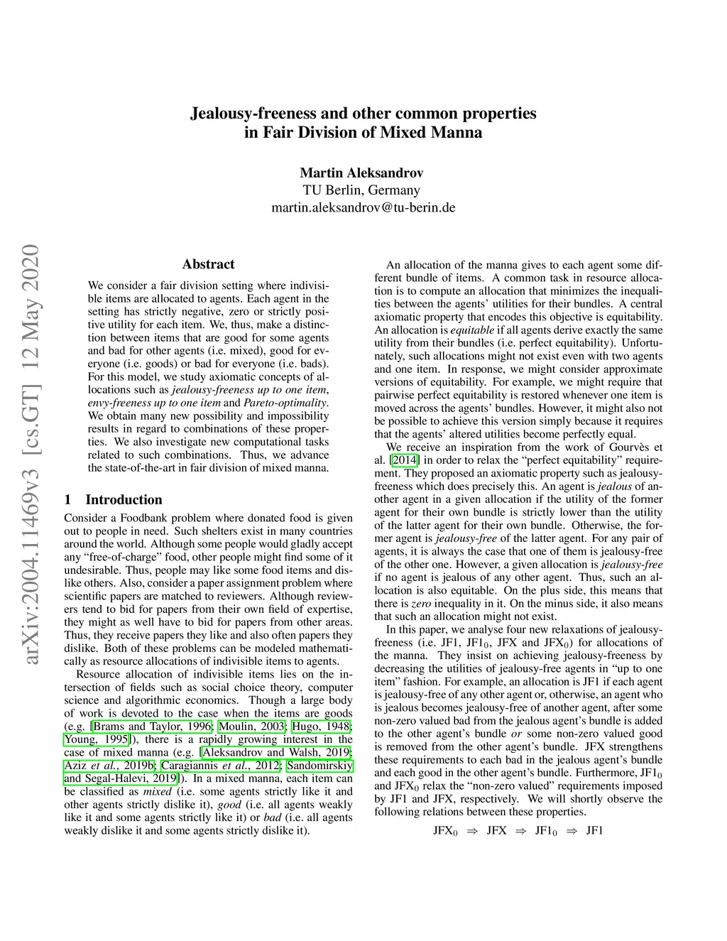 We consider a fair division setting where indivisible items are allocated to agents. Each agent in the setting has strictly negative, zero or strictly positive utility for each item. We, thus, make a distinction between items that are good for some agents and bad for other agents (i.e. mixed), good for everyone (i.e. goods) or bad for everyone (i.e. bads). For this model, we study axiomatic concepts of allocations such as jealousy-freeness up to one item, envy-freeness up to one item and Pareto-optimality. We obtain many new possibility and impossibility results in regard to combinations of these properties. We also investigate new computational tasks related to such combinations. Thus, we advance the state-of-the-art in fair division of mixed manna.