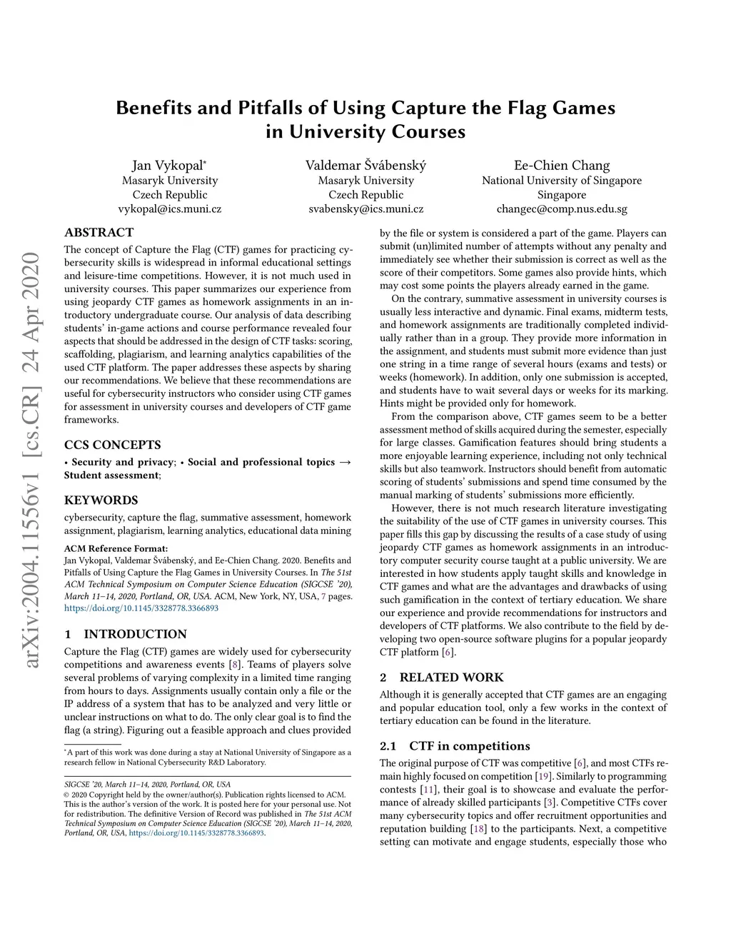 Benefits and Pitfalls of Using Capture the Flag Games in University