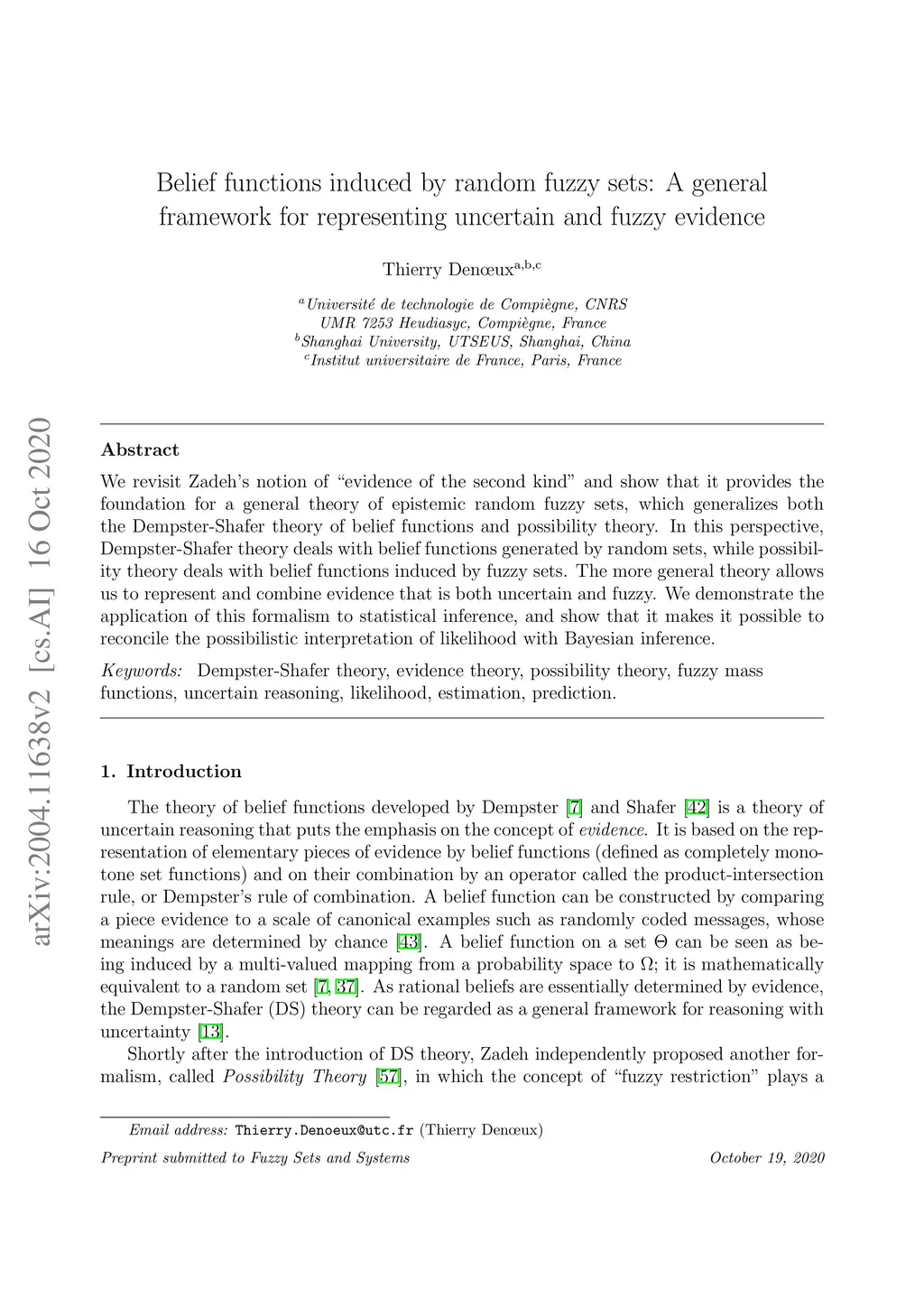 We revisit Zadeh's notion of "evidence of the second kind" and show that it provides the foundation for a general theory of epistemic random fuzzy sets, which generalizes both the Dempster-Shafer theory of belief functions and possibility theory. In this perspective, Dempster-Shafer theory deals with belief functions generated by random sets, while possibility theory deals with belief functions induced by fuzzy sets. The more general theory allows us to represent and combine evidence that is both uncertain and fuzzy. We demonstrate the application of this formalism to statistical inference, and show that it makes it possible to reconcile the possibilistic interpretation of likelihood with Bayesian inference.