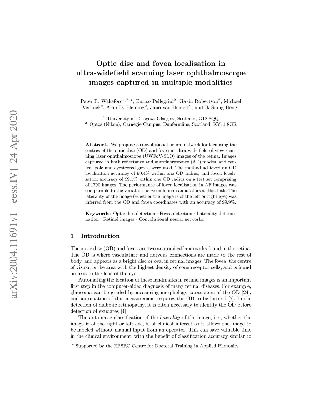 Optic disc and fovea localisation in ultra-widefield scanning laser