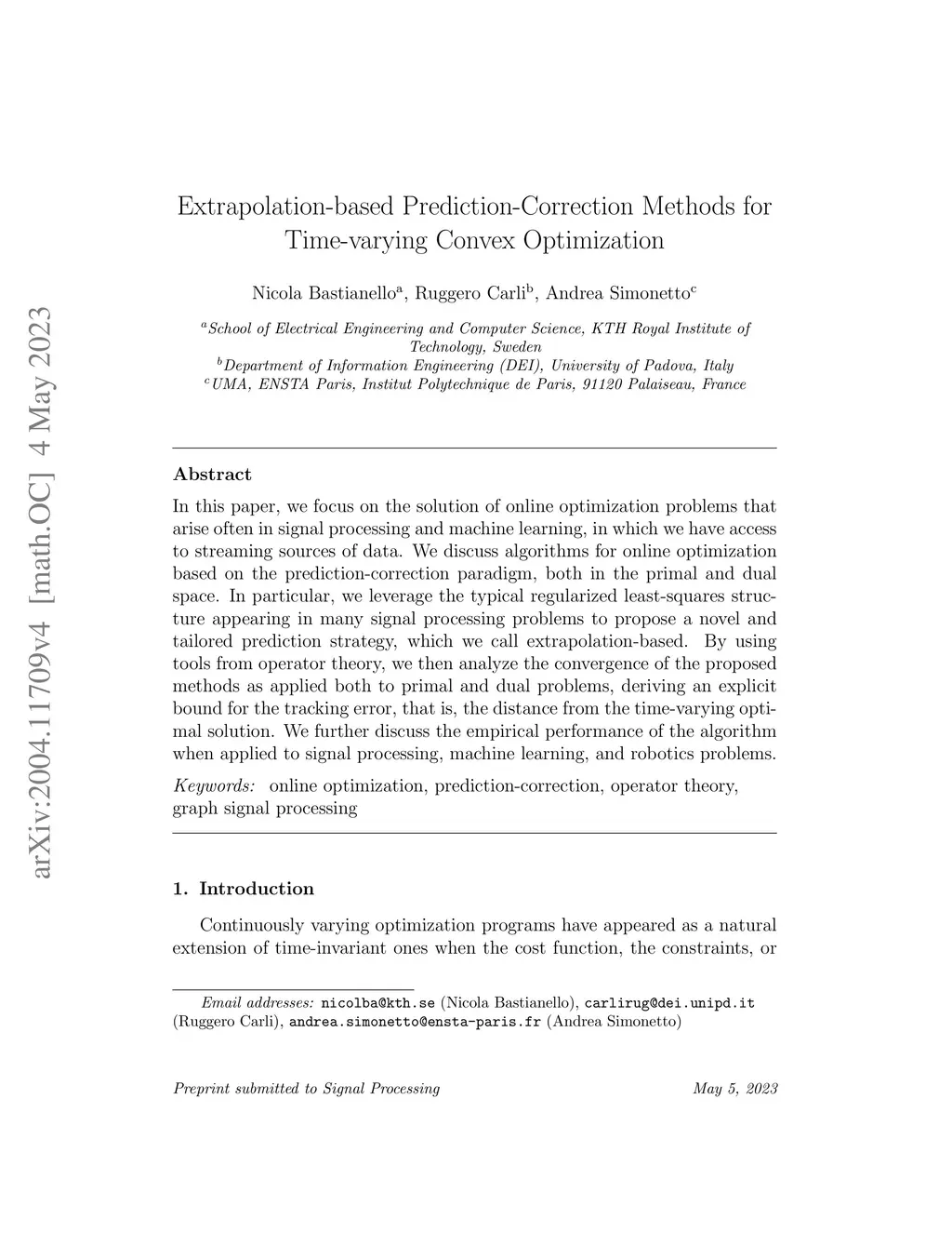 In this paper, we focus on the solution of online optimization problems that arise often in signal processing and machine learning, in which we have access to streaming sources of data. We discuss algorithms for online optimization based on the prediction-correction paradigm, both in the primal and dual space. In particular, we leverage the typical regularized least-squares structure appearing in many signal processing problems to propose a novel and tailored prediction strategy, which we call extrapolation-based. By using tools from operator theory, we then analyze the convergence of the proposed methods as applied both to primal and dual problems, deriving an explicit bound for the tracking error, that is, the distance from the time-varying optimal solution. We further discuss the empirical performance of the algorithm when applied to signal processing, machine learning, and robotics problems.