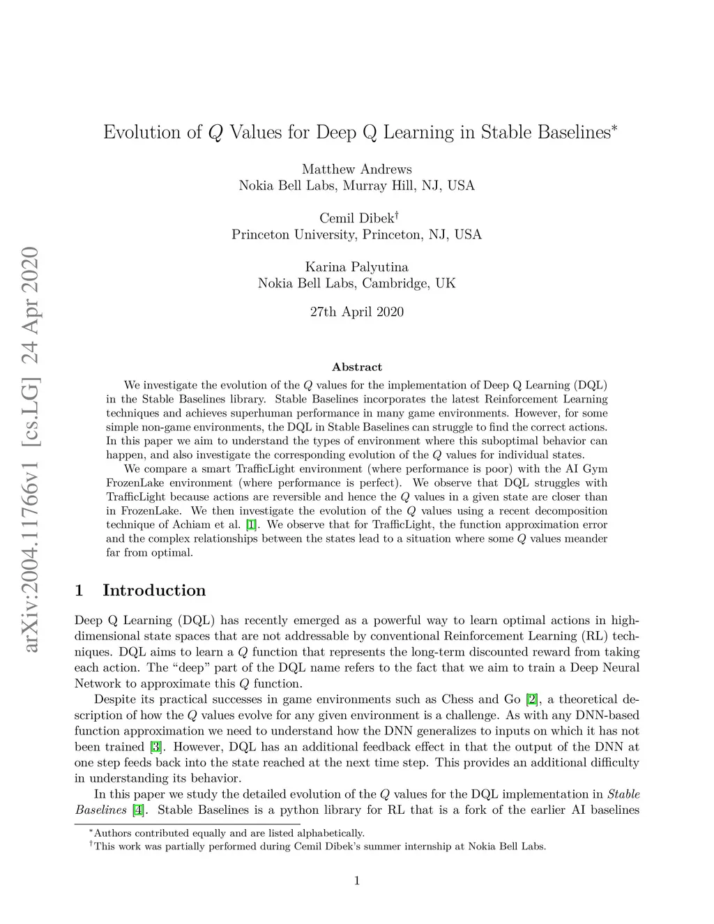 We investigate the evolution of the Q values for the implementation of Deep Q Learning (DQL) in the Stable Baselines library. Stable Baselines incorporates the latest Reinforcement Learning techniques and achieves superhuman performance in many game environments. However, for some simple non-game environments, the DQL in Stable Baselines can struggle to find the correct actions. In this paper we aim to understand the types of environment where this suboptimal behavior can happen, and also investigate the corresponding evolution of the Q values for individual states. We compare a smart TrafficLight environment (where performance is poor) with the AI Gym FrozenLake environment (where performance is perfect). We observe that DQL struggles with TrafficLight because actions are reversible and hence the Q values in a given state are closer than in FrozenLake. We then investigate the evolution of the Q values using a recent decomposition technique of Achiam et al.. We observe that for TrafficLight, the function approximation error and the complex relationships between the states lead to a situation where some Q values meander far from optimal.