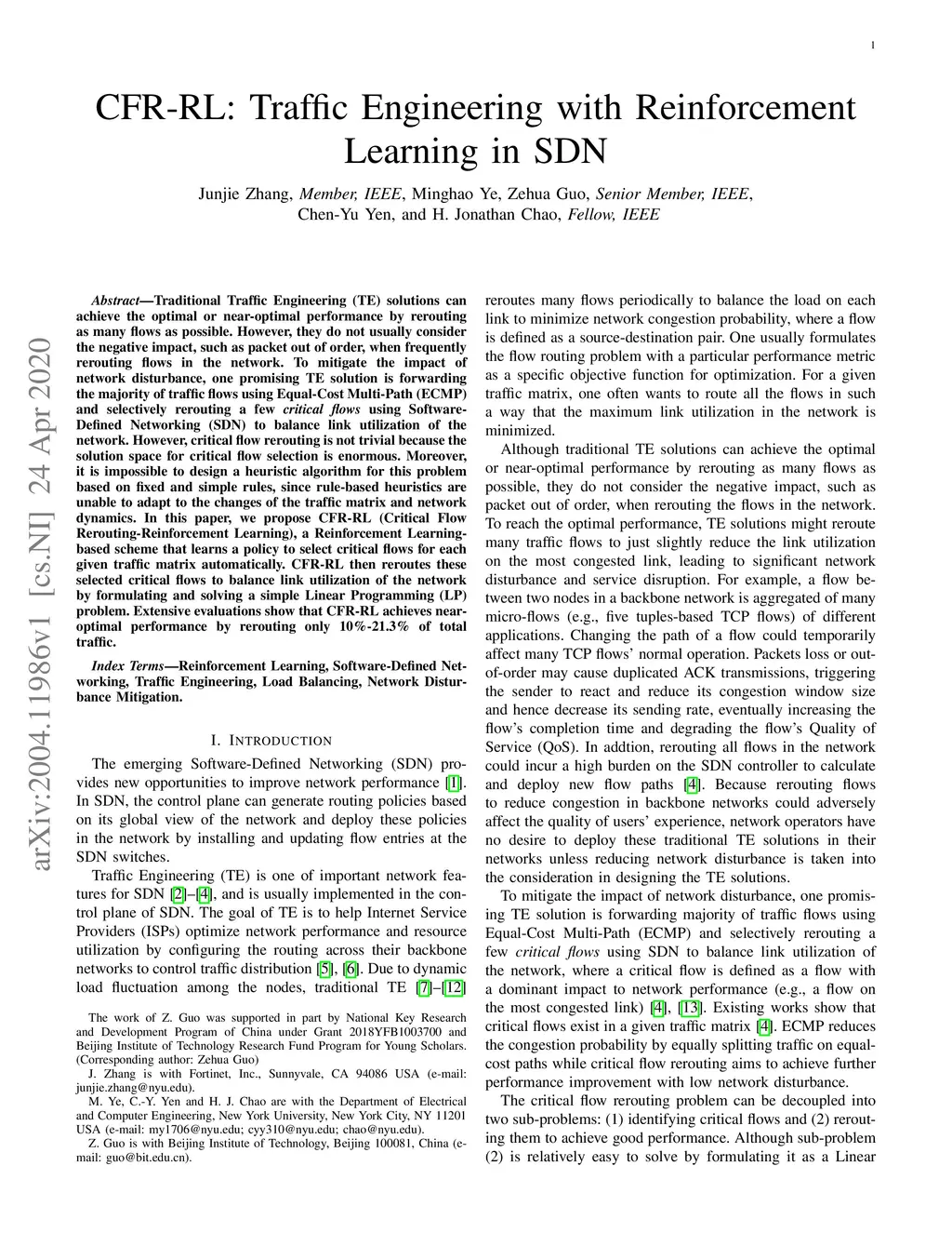 CFR-RL: Traffic Engineering with Reinforcement Learning in SDN