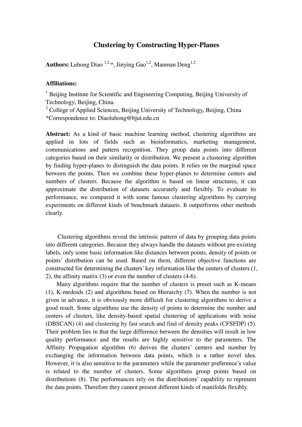 Clustering by Constructing Hyper-Planes