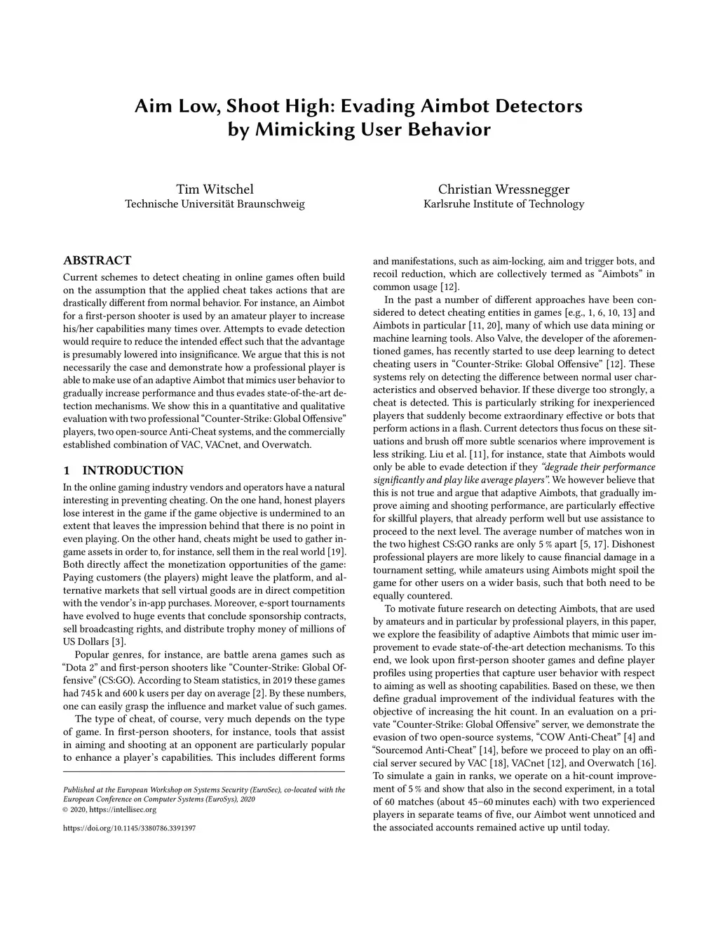 Current schemes to detect cheating in online games often build on the assumption that the applied cheat takes actions that are drastically different from normal behavior. For instance, an Aimbot for a first-person shooter is used by an amateur player to increase his/her capabilities many times over. Attempts to evade detection would require to reduce the intended effect such that the advantage is presumably lowered into insignificance. We argue that this is not necessarily the case and demonstrate how a professional player is able to make use of an adaptive Aimbot that mimics user behavior to gradually increase performance and thus evades state-of-the-art detection mechanisms. We show this in a quantitative and qualitative evaluation with two professional "Counter-Strike: Global Offensive" players, two open-source Anti-Cheat systems, and the commercially established combination of VAC, VACnet, and Overwatch.