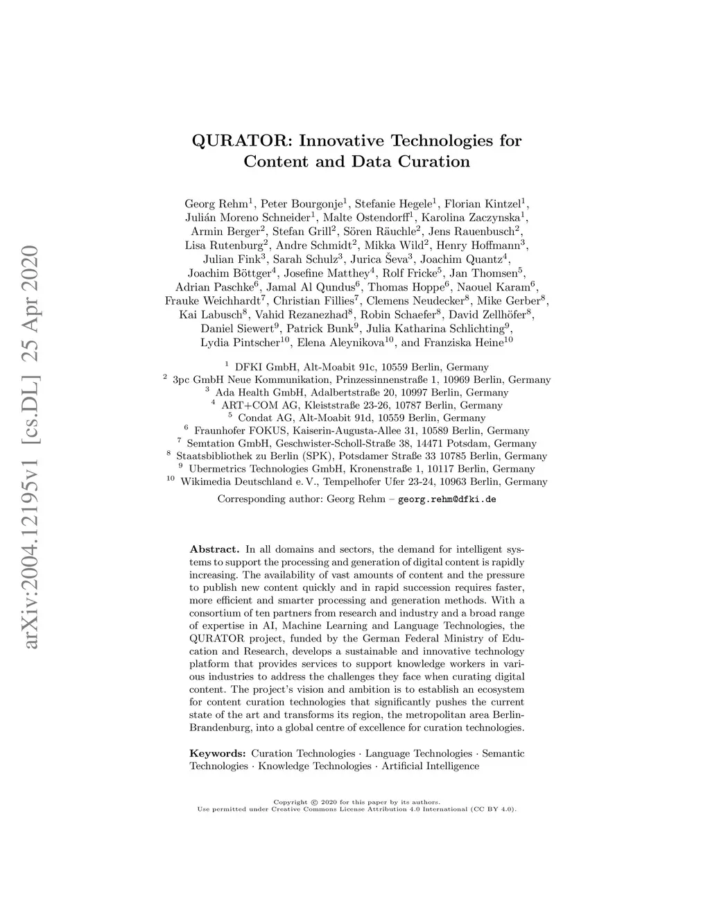 QURATOR: Innovative Technologies for Content and Data Curation