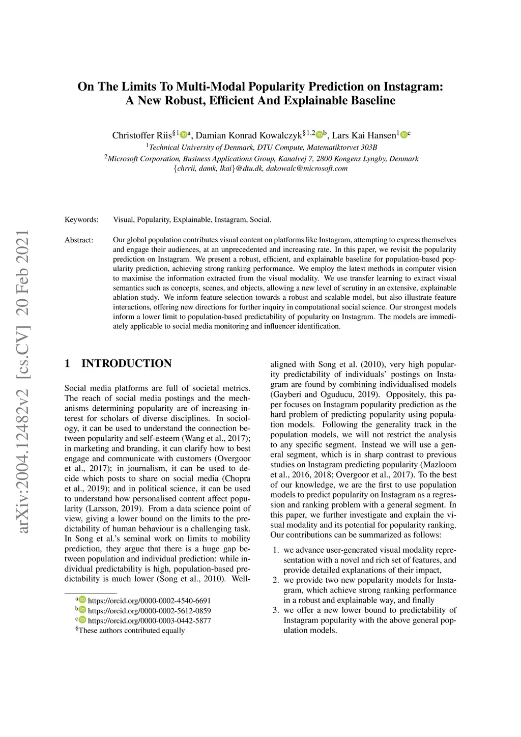 The predictability of social media popularity is a topic of much scientific interest and significant practical importance. We present a new strong baseline for popularity prediction on Instagram, which is both robust and efficient to compute. The approach expands previous work by a comprehensive ablation study of the predictive power of multiple representations of the visual modality and by detailed use of explainability tools. We use transfer learning to extract visual semantics as concepts, scenes, and objects, which allows us to interpret and explain the trained model and predictions. The study is based in one million posts extracted from Instagram. We approach the problem of popularity prediction as a ranking problem, where we predict the log-normalised number of likes. Through our ablation study design, we can suggest models that outperform a previous state-of-the-art black-box method for multi-modal popularity prediction on Instagram.