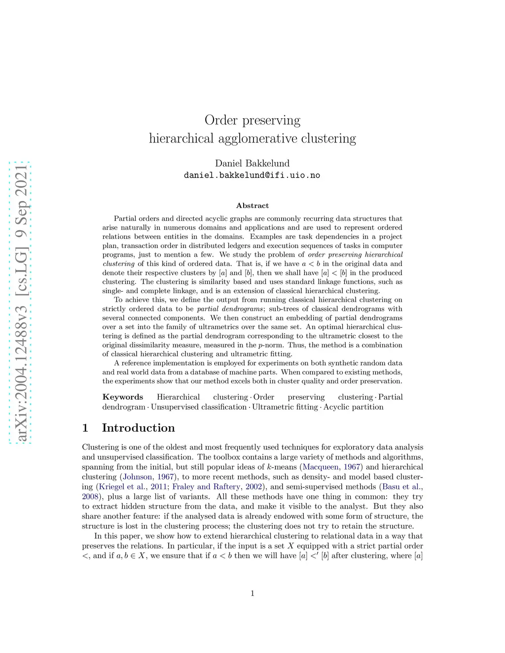 Order preserving hierarchical agglomerative clustering