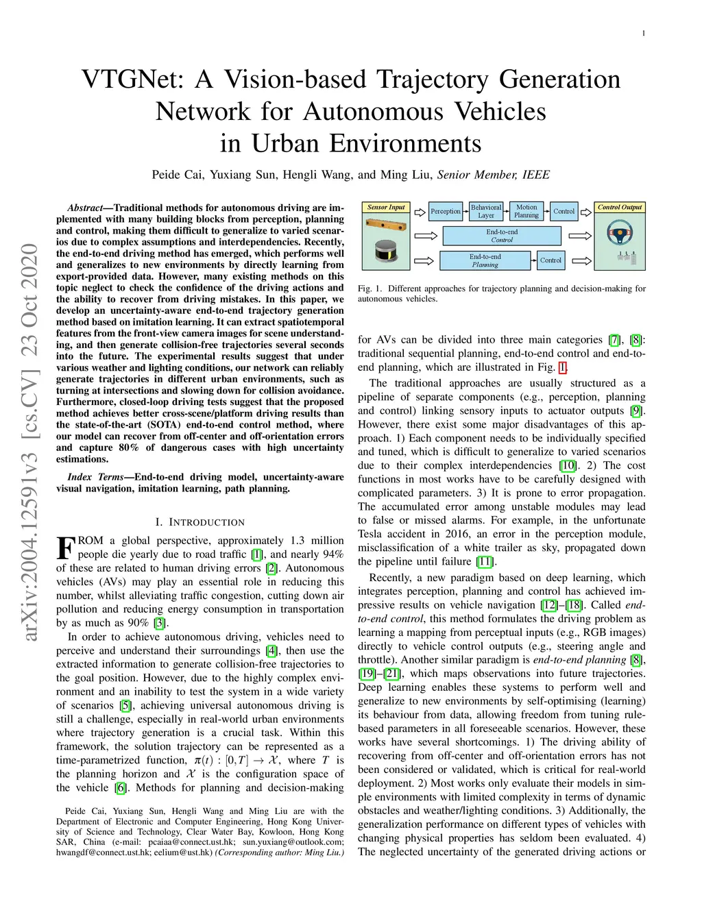VTGNet: A Vision-based Trajectory Generation Network for Autonomous