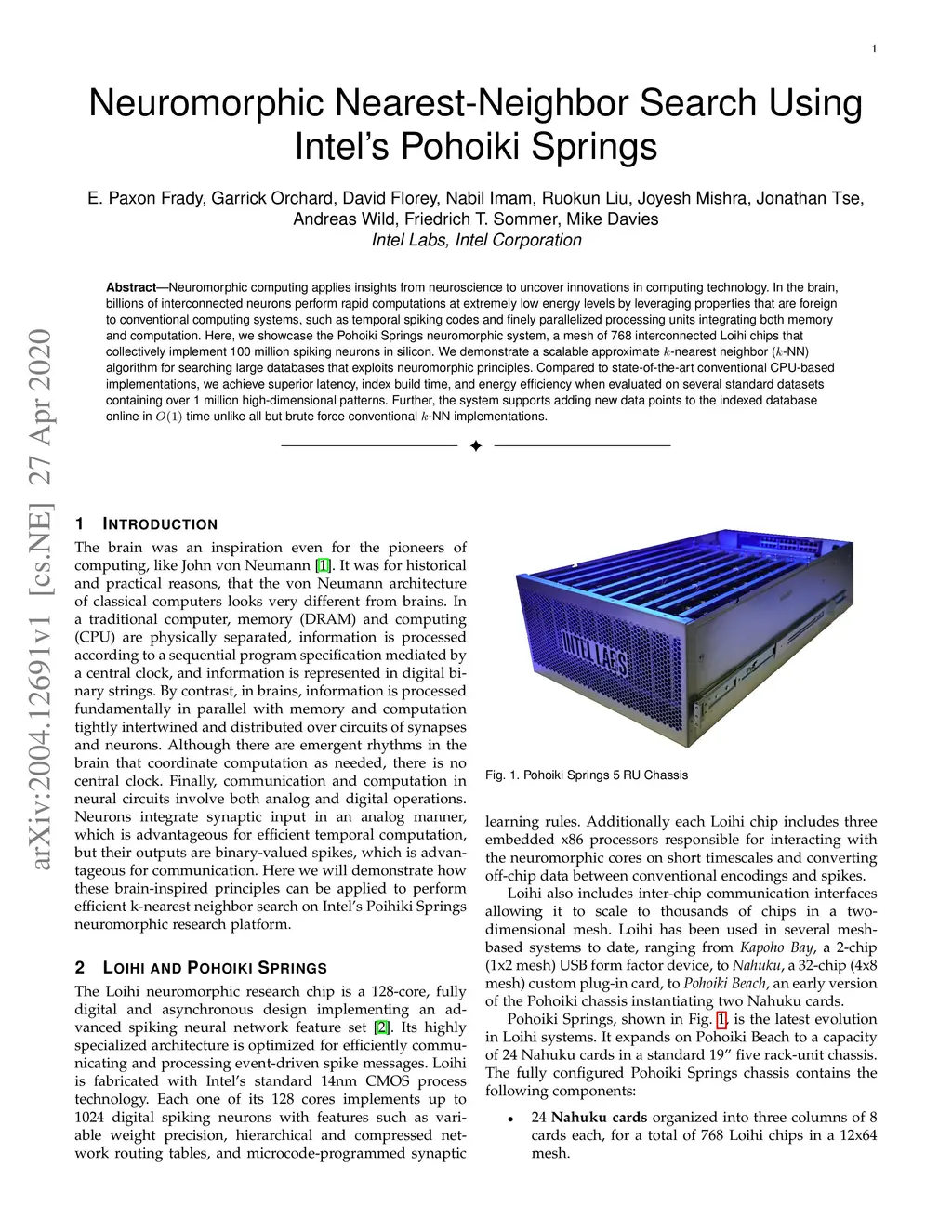 Neuromorphic Nearest-Neighbor Search Using Intel's Pohoiki Springs
