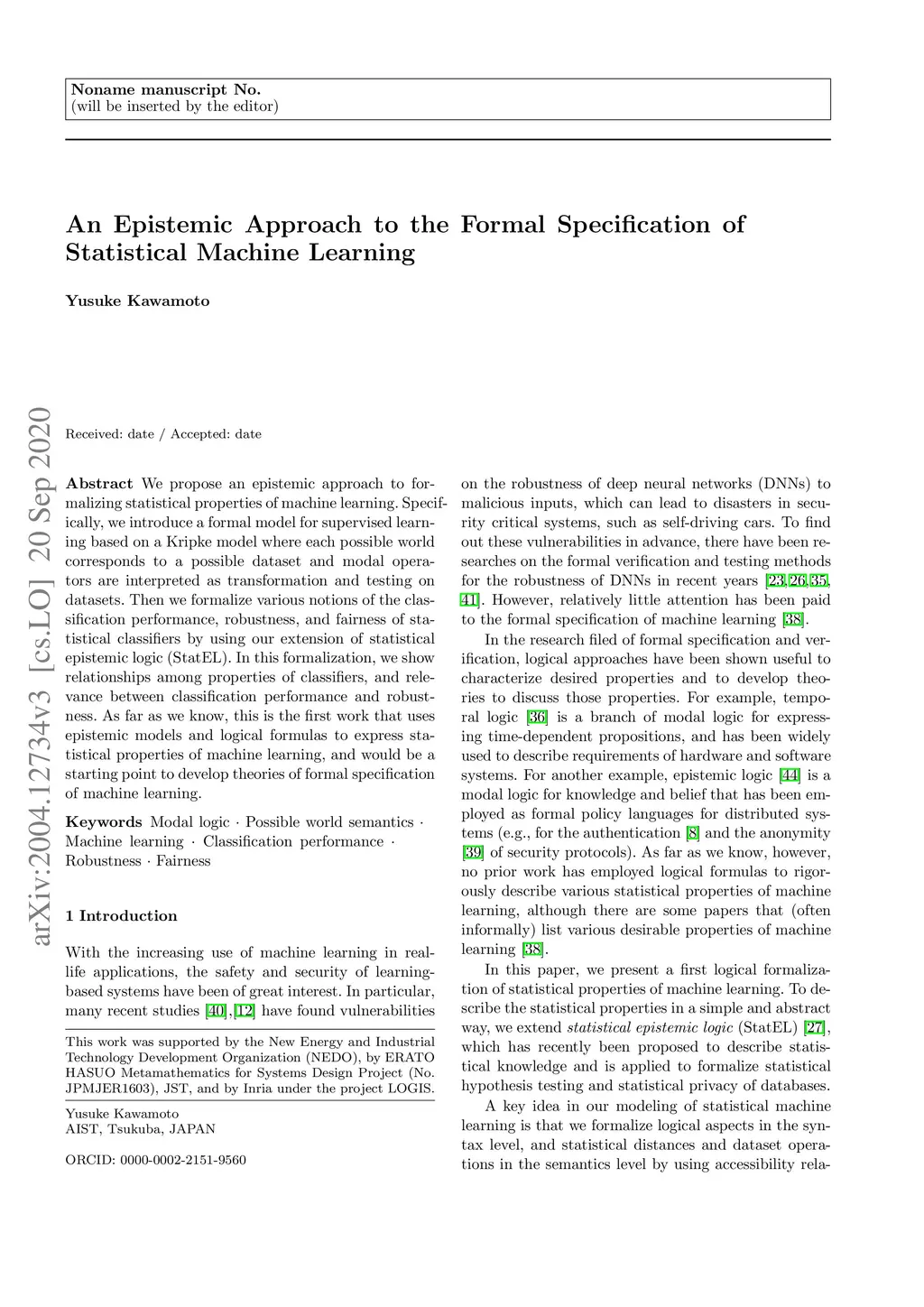 An Epistemic Approach to the Formal Specification of Statistical Machine