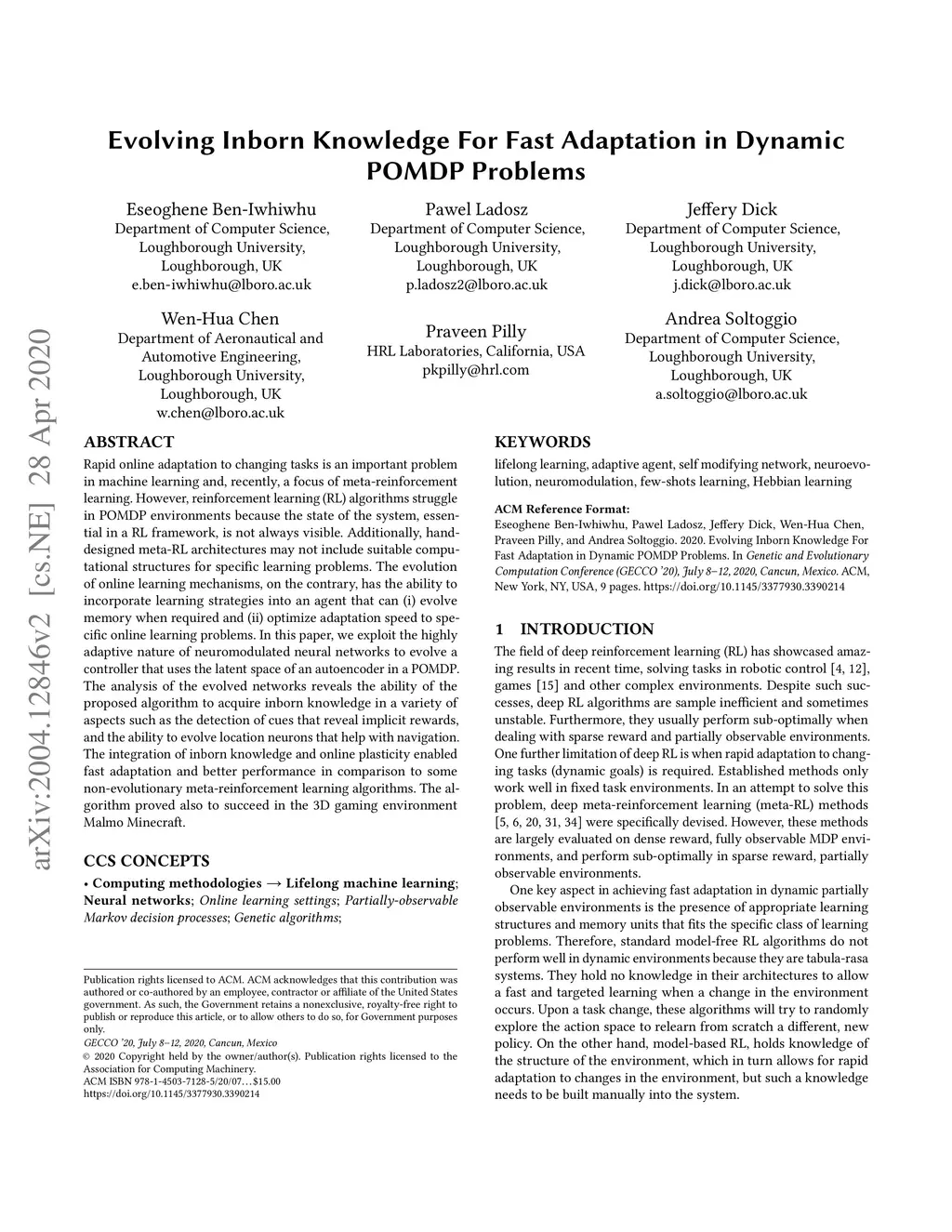 Evolving Inborn Knowledge For Fast Adaptation in Dynamic POMDP Problems