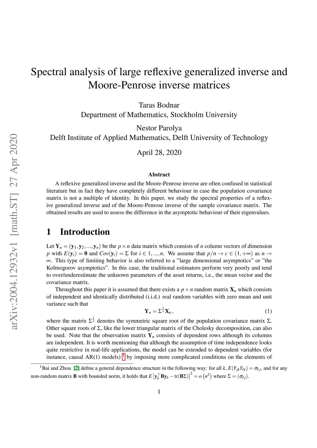 A reflexive generalized inverse and the Moore-Penrose inverse are often confused in statistical literature but in fact they have completely different behaviour in case the population covariance matrix is not a multiple of identity. In this paper, we study the spectral properties of a reflexive generalized inverse and of the Moore-Penrose inverse of the sample covariance matrix. The obtained results are used to assess the difference in the asymptotic behaviour of their eigenvalues.