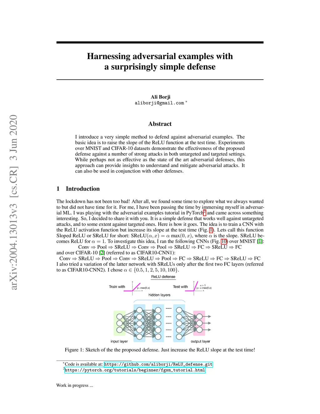 I introduce a very simple method to defend against adversarial examples. The basic idea is to raise the slope of the ReLU function at the test time. Experiments over MNIST and CIFAR-10 datasets demonstrate the effectiveness of the proposed defense against a number of strong attacks in both untargeted and targeted settings. While perhaps not as effective as the state of the art adversarial defenses, this approach can provide insights to understand and mitigate adversarial attacks. It can also be used in conjunction with other defenses.