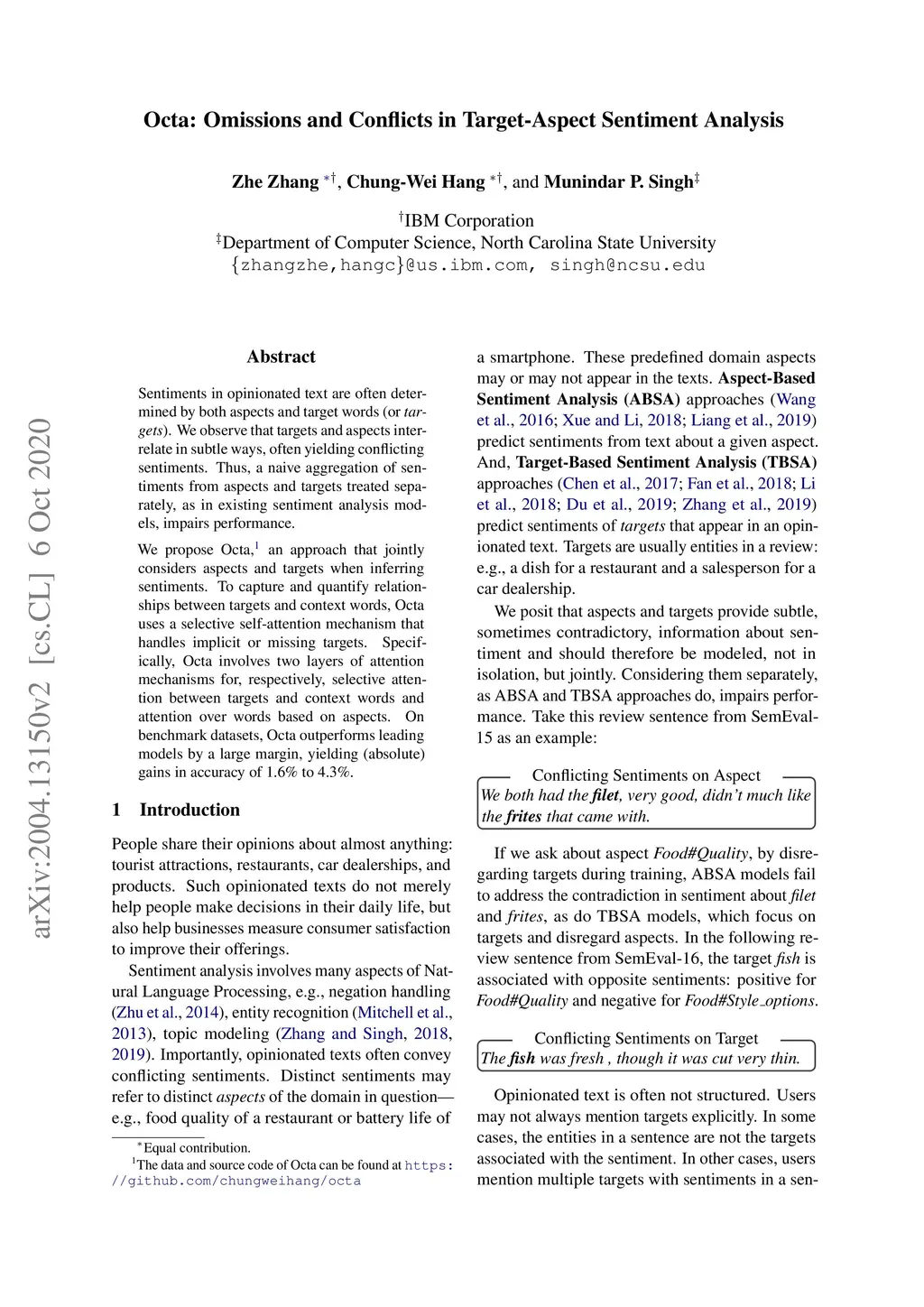 Attention for Aspect Targeted Sentiment Analysis (SNAT)