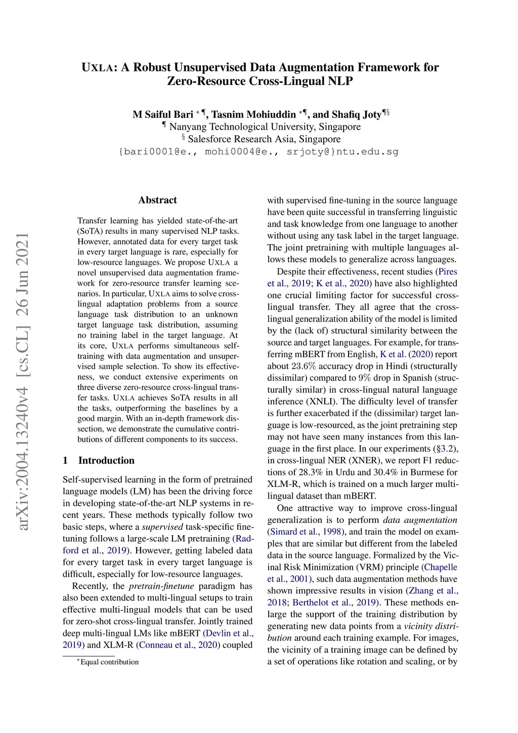 UXLA: A Robust Unsupervised Data Augmentation Framework for