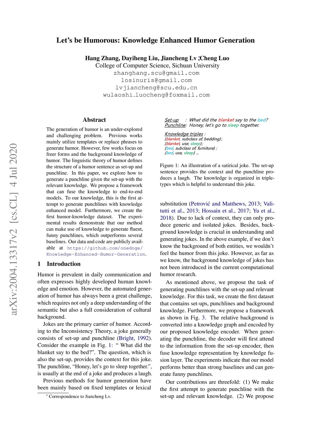 Let's be Humorous: Knowledge Enhanced Humor Generation