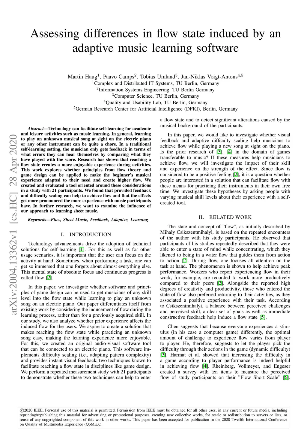 Assessing differences in flow state induced by an adaptive music
