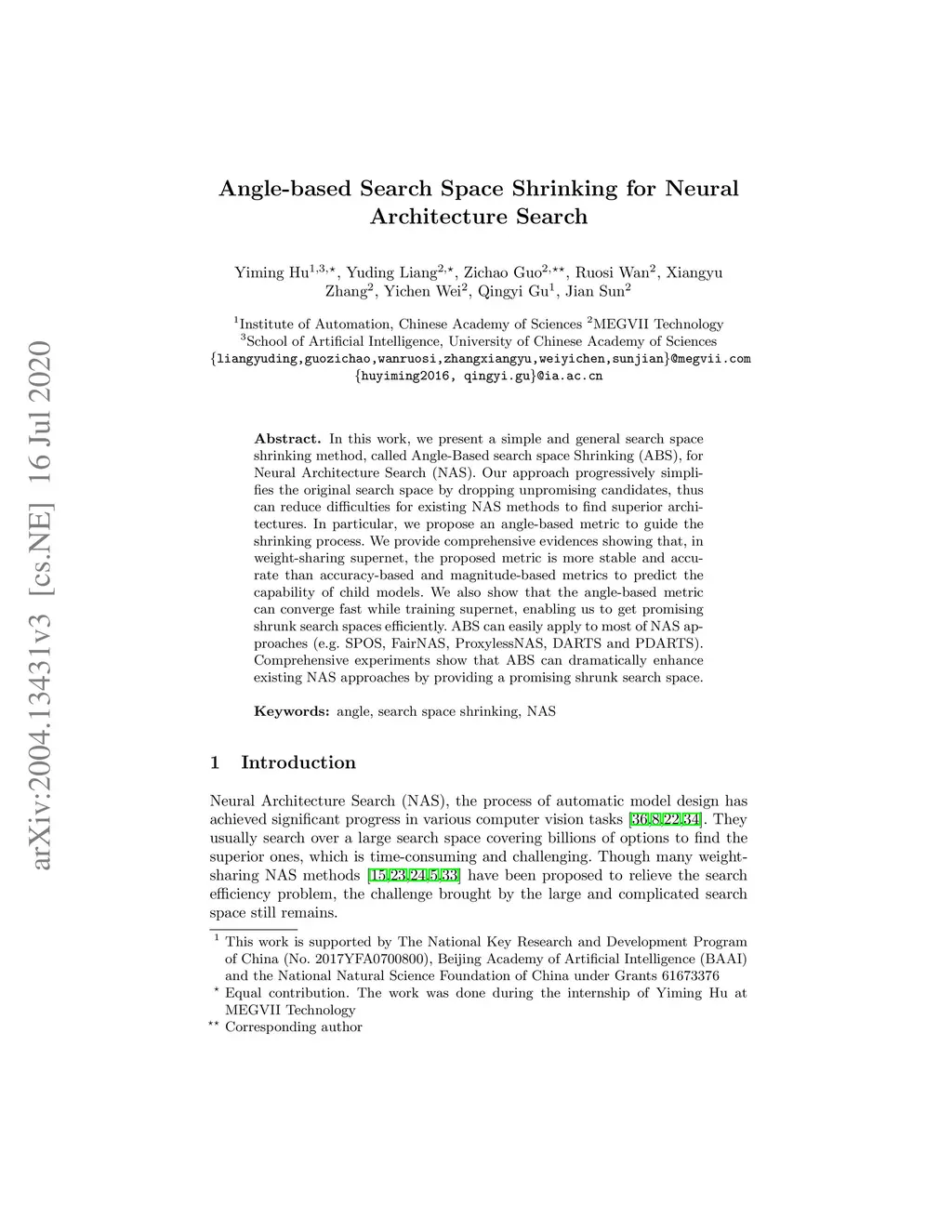 Angle-based Search Space Shrinking for Neural Architecture Search