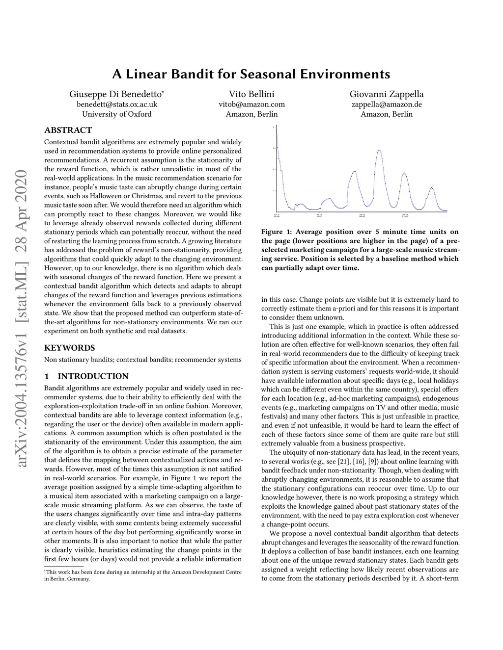 A Linear Bandit for Seasonal Environments