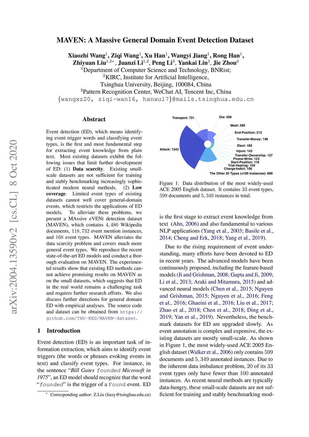 Event detection (ED), which means identifying event trigger words and classifying event types, is the first and most fundamental step for extracting event knowledge from plain text. Most existing datasets exhibit the following issues that limit further development of ED: (1) Data scarcity. Existing small-scale datasets are not sufficient for training and stably benchmarking increasingly sophisticated modern neural methods. (2) Low coverage. Limited event types of existing datasets cannot well cover general-domain events, which restricts the applications of ED models. To alleviate these problems, we present a MAssive eVENt detection dataset (MAVEN), which contains 4,480 Wikipedia documents, 118,732 event mention instances, and 168 event types. MAVEN alleviates the data scarcity problem and covers much more general event types. We reproduce the recent state-of-the-art ED models and conduct a thorough evaluation on MAVEN. The experimental results show that existing ED methods cannot achieve promising results on MAVEN as on the small datasets, which suggests that ED in the real world remains a challenging task and requires further research efforts. We also discuss further directions for general domain ED with empirical analyses. The source code and dataset can be obtained from https://github.com/THU-KEG/MAVEN-dataset.