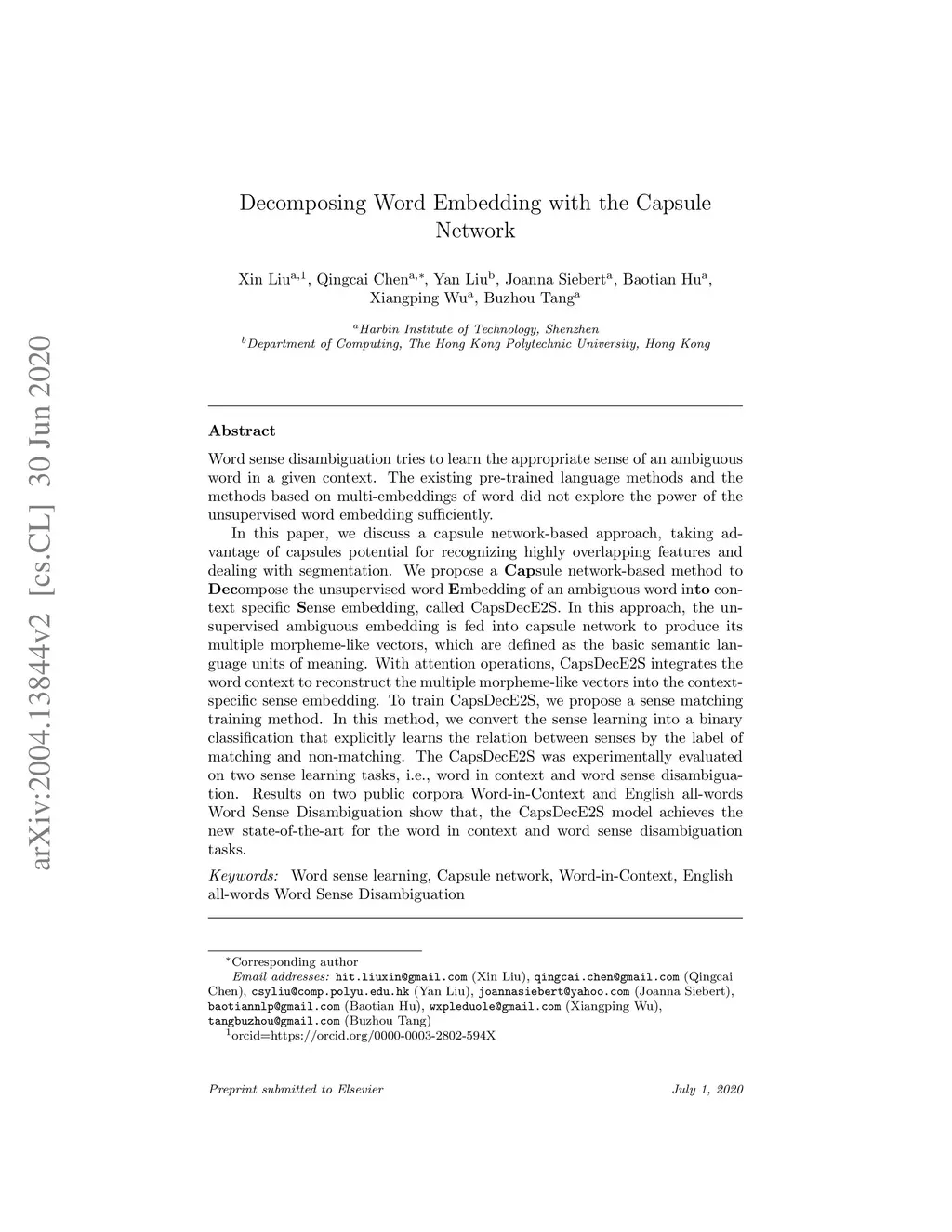 Decomposing Word Embedding with the Capsule Network