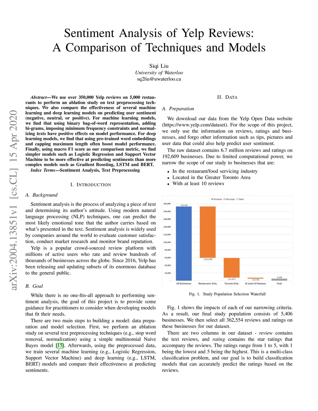 Sentiment Analysis of Yelp Reviews: A Comparison of Techniques and