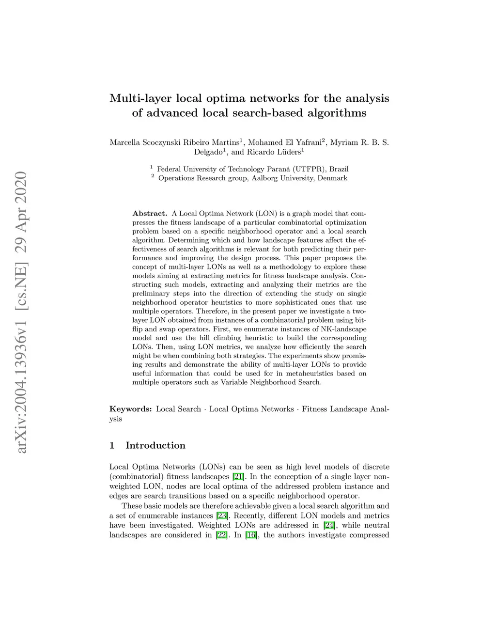 A Local Optima Network (LON) is a graph model that compresses the fitness landscape of a particular combinatorial optimization problem based on a specific neighborhood operator and a local search algorithm. Determining which and how landscape features affect the effectiveness of search algorithms is relevant for both predicting their performance and improving the design process. This paper proposes the concept of multi-layer LONs as well as a methodology to explore these models aiming at extracting metrics for fitness landscape analysis. Constructing such models, extracting and analyzing their metrics are the preliminary steps into the direction of extending the study on single neighborhood operator heuristics to more sophisticated ones that use multiple operators. Therefore, in the present paper we investigate a twolayer LON obtained from instances of a combinatorial problem using bitflip and swap operators. First, we enumerate instances of NK-landscape model and use the hill climbing heuristic to build the corresponding LONs. Then, using LON metrics, we analyze how efficiently the search might be when combining both strategies. The experiments show promising results and demonstrate the ability of multi-layer LONs to provide useful information that could be used for in metaheuristics based on multiple operators such as Variable Neighborhood Search.