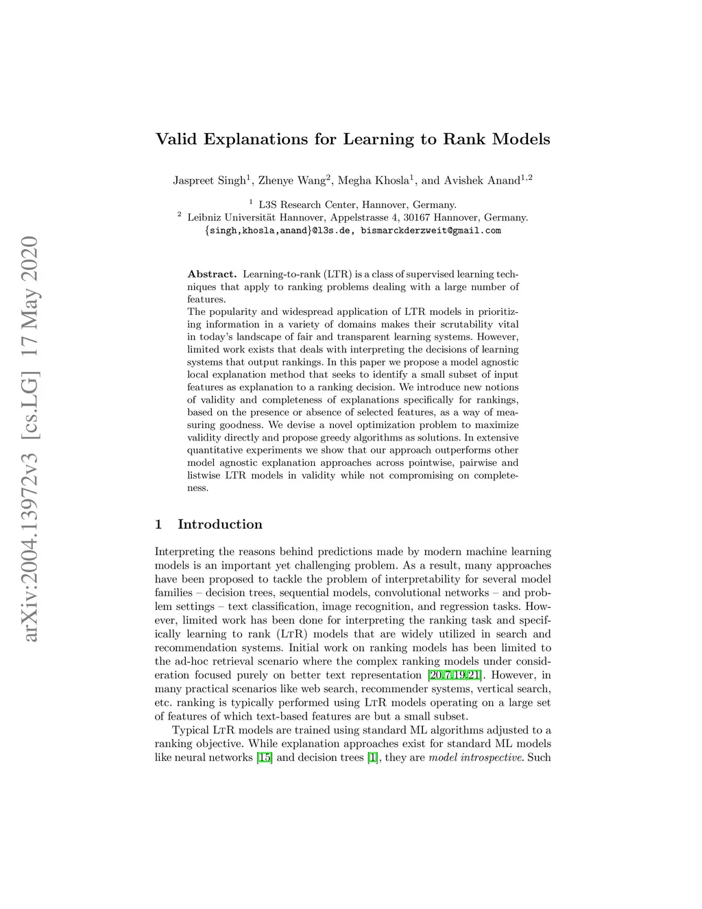 Valid Explanations for Learning to Rank Models