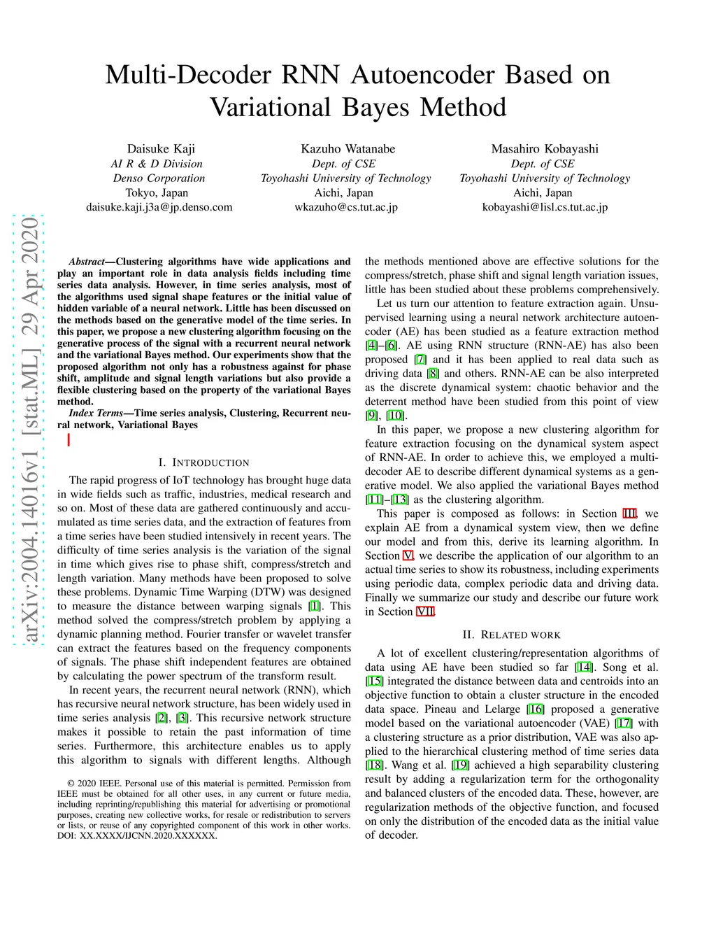 Multi-Decoder RNN Autoencoder Based on Variational Bayes Method