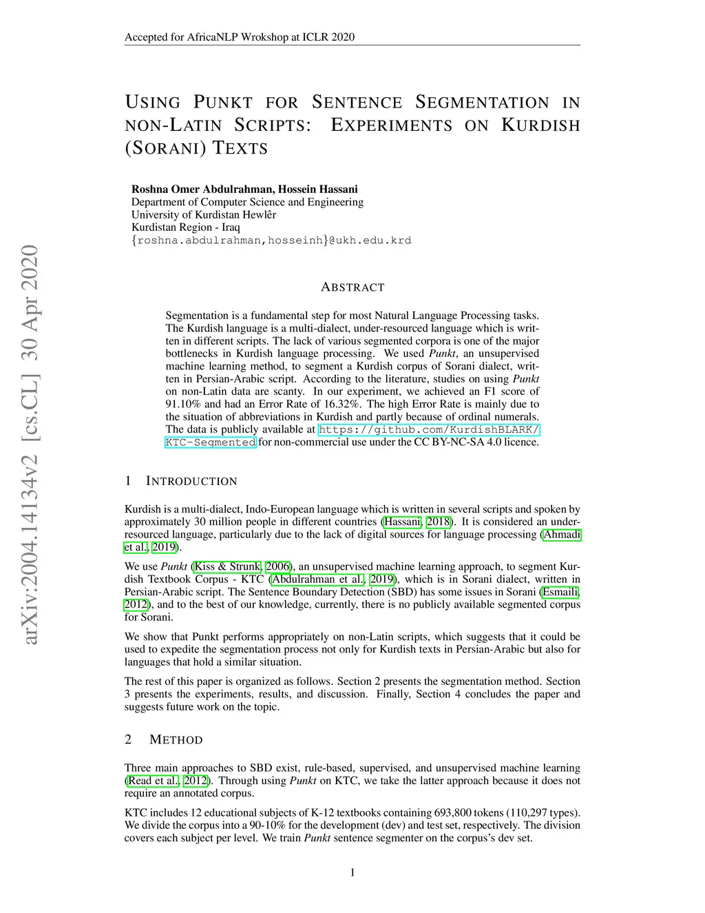 on Kurdish (Sorani) Texts