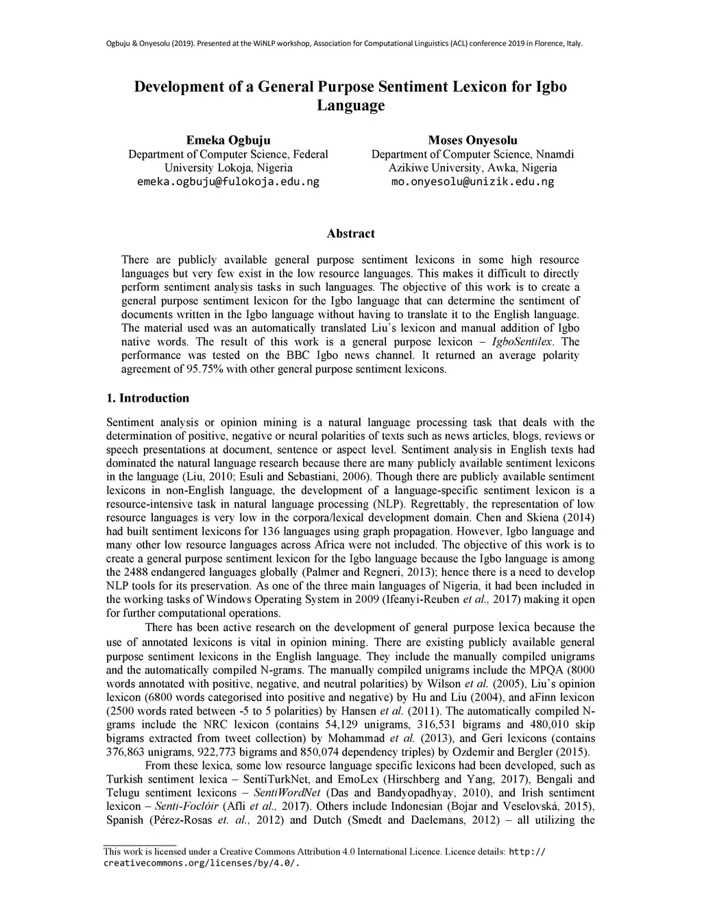 Development of a General Purpose Sentiment Lexicon for Igbo Language