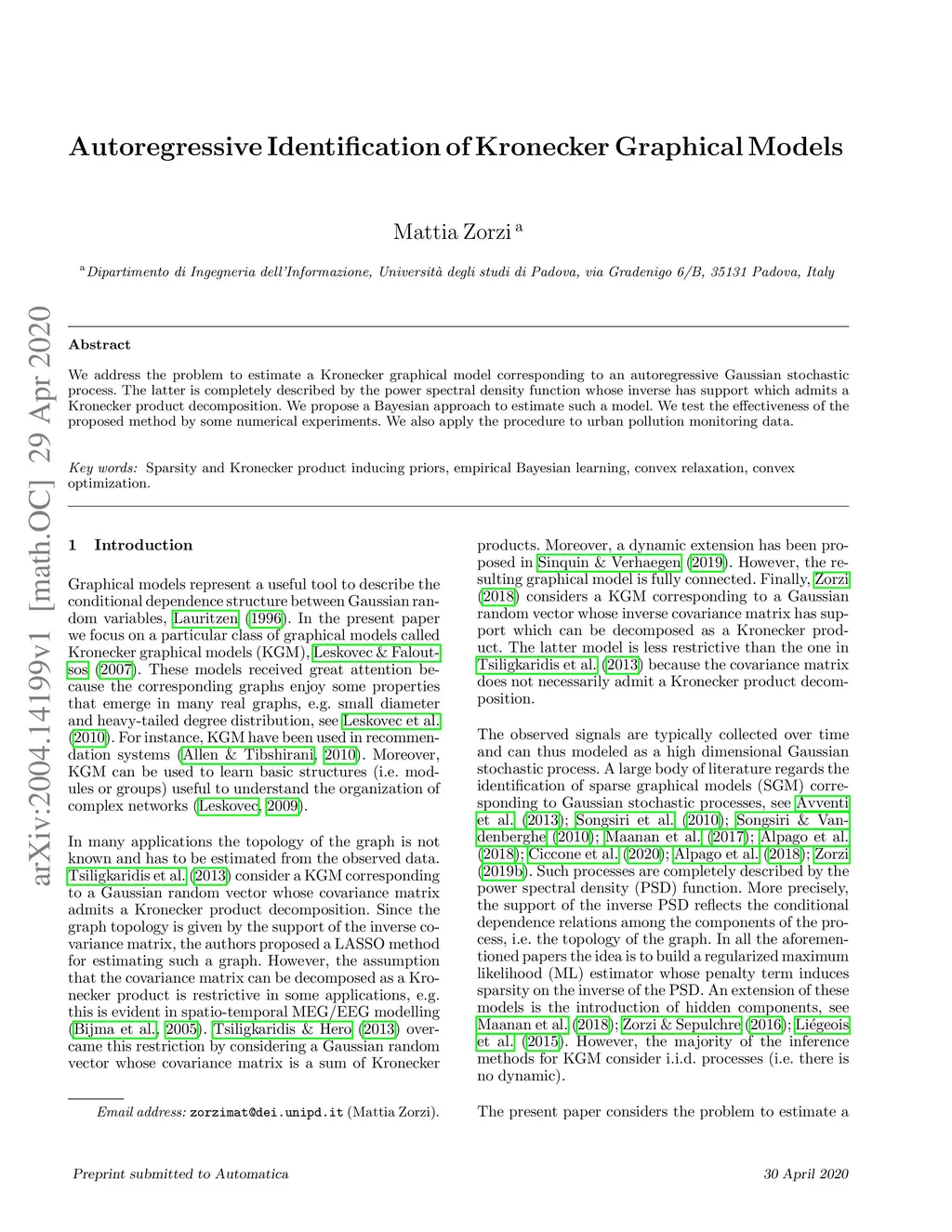 Autoregressive Identification of Kronecker Graphical Models