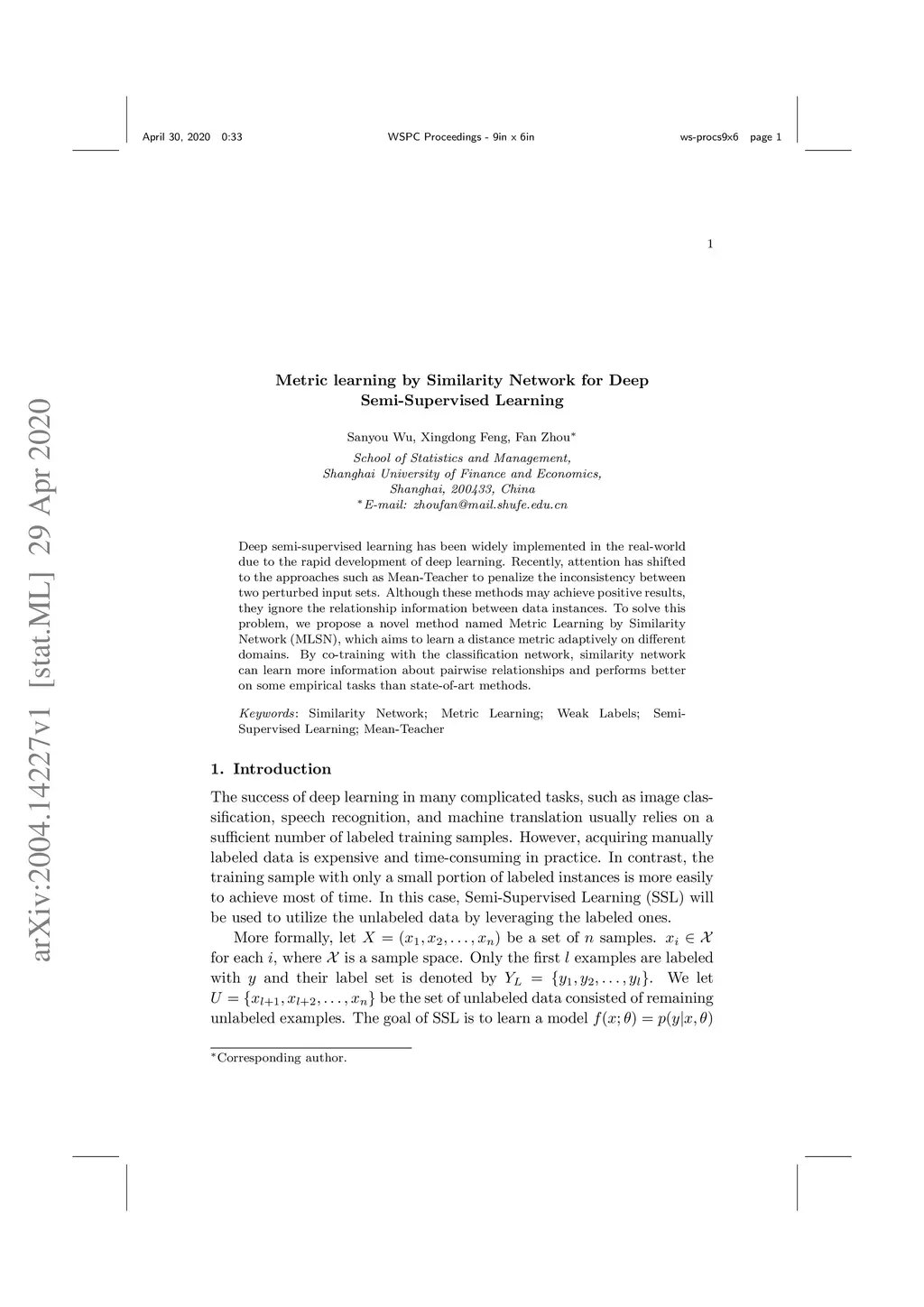 Deep semi-supervised learning has been widely implemented in the real-world due to the rapid development of deep learning. Recently, attention has shifted to the approaches such as Mean-Teacher to penalize the inconsistency between two perturbed input sets. Although these methods may achieve positive results, they ignore the relationship information between data instances. To solve this problem, we propose a novel method named Metric Learning by Similarity Network (MLSN), which aims to learn a distance metric adaptively on different domains. By co-training with the classification network, similarity network can learn more information about pairwise relationships and performs better on some empirical tasks than state-of-art methods.
