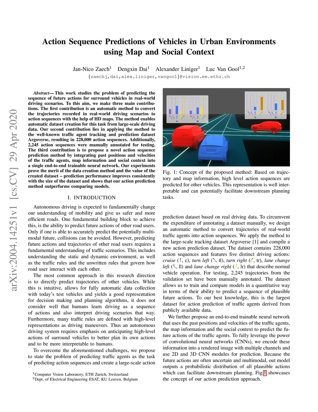 Action Sequence Predictions of Vehicles in Urban Environments using Map