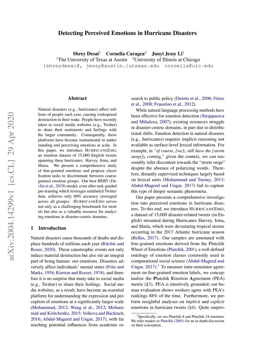 Detecting Perceived Emotions in Hurricane Disasters