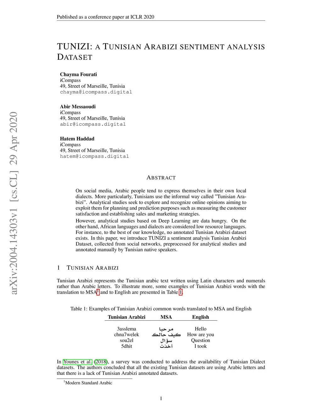TUNIZI: a Tunisian Arabizi sentiment analysis Dataset