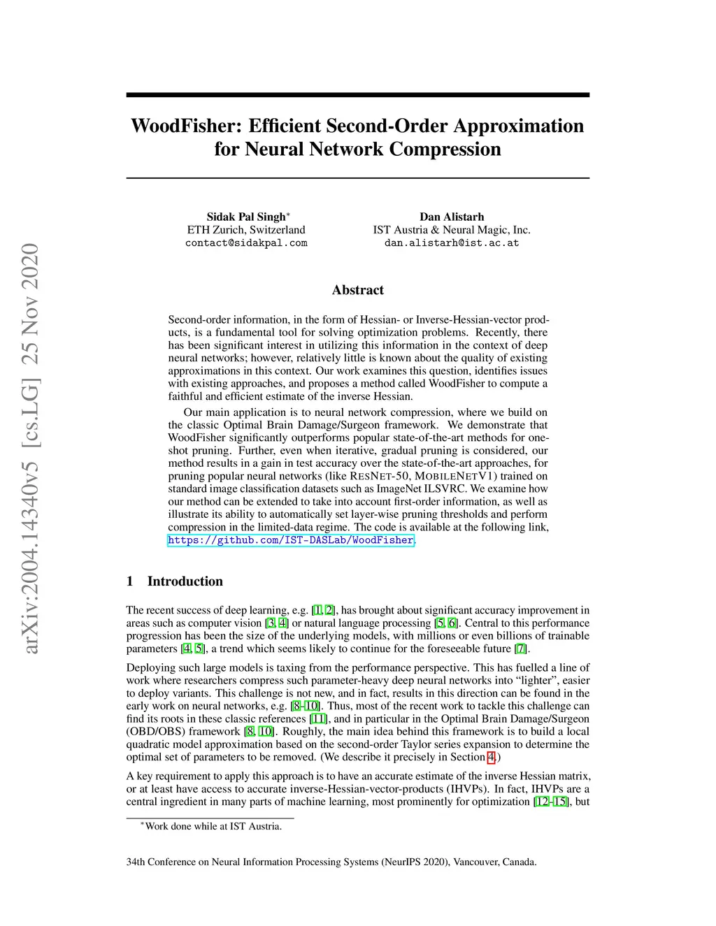 WoodFisher: Efficient Second-Order Approximation for Neural Network
