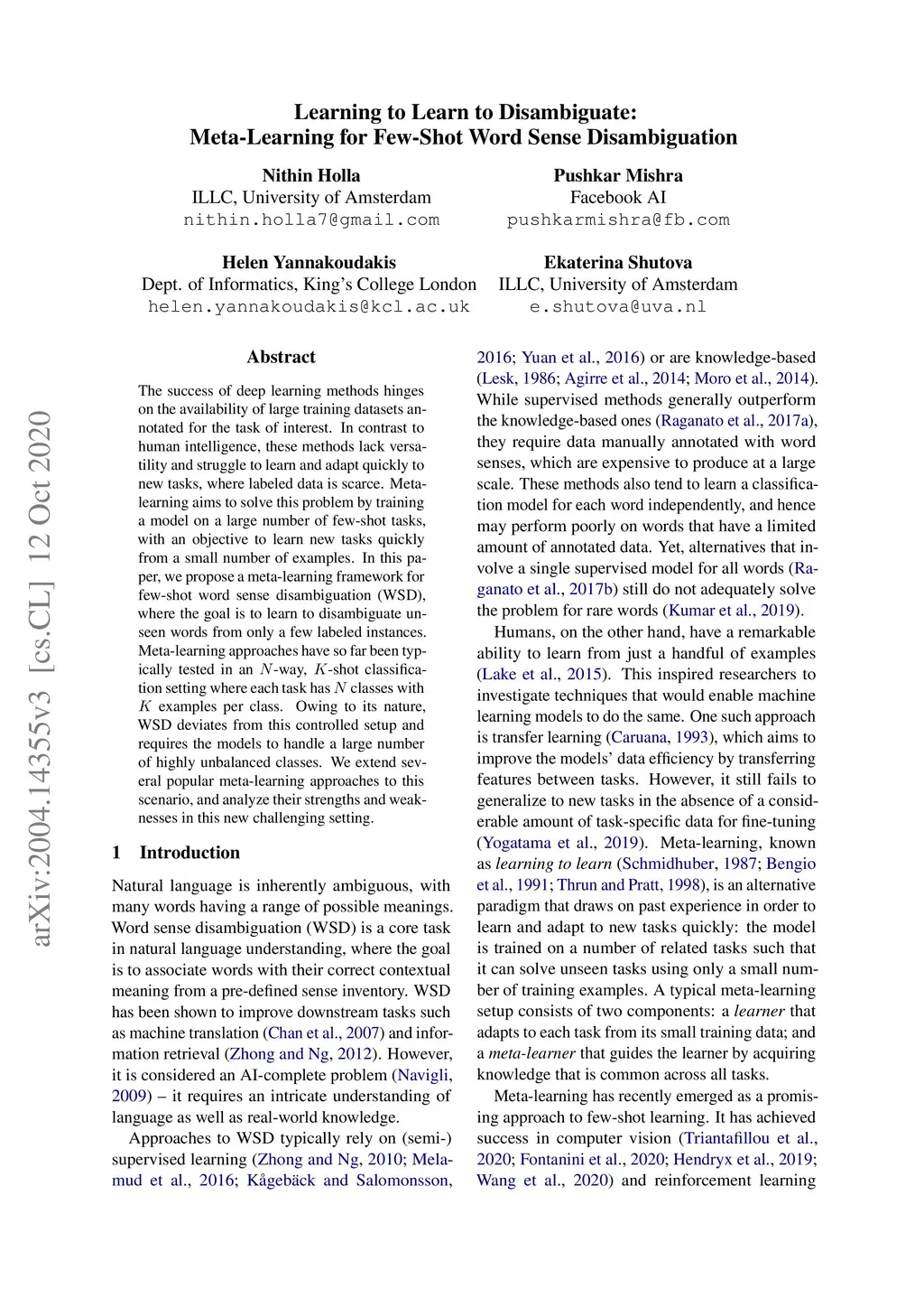 Learning to Learn to Disambiguate: Meta-Learning for Few-Shot Word Sense
