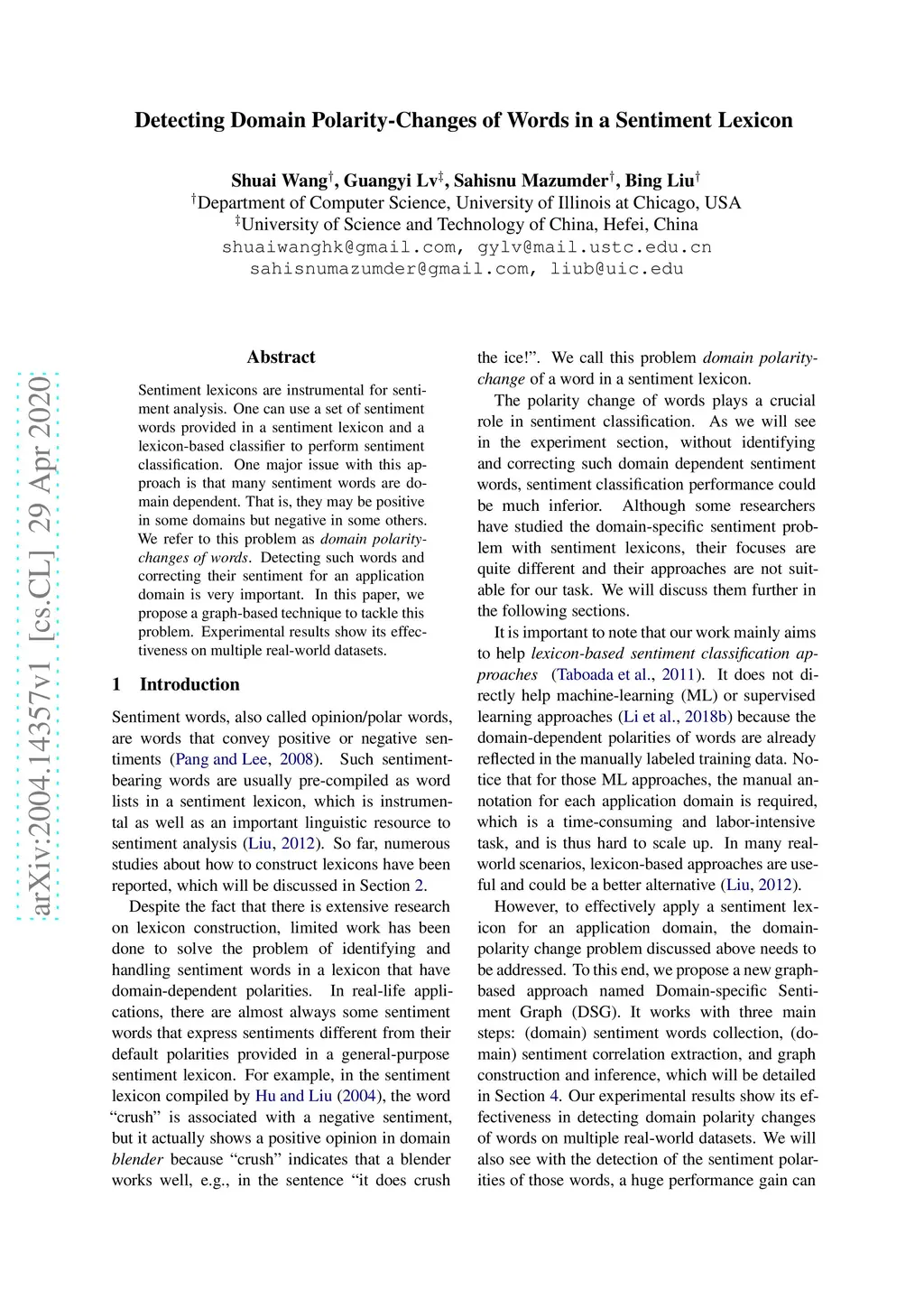 Sentiment lexicons are instrumental for sentiment analysis. One can use a set of sentiment words provided in a sentiment lexicon and a lexicon-based classifier to perform sentiment classification. One major issue with this approach is that many sentiment words are domain dependent. That is, they may be positive in some domains but negative in some others. We refer to this problem as domain polarity-changes of words. Detecting such words and correcting their sentiment for an application domain is very important. In this paper, we propose a graph-based technique to tackle this problem. Experimental results show its effectiveness on multiple real-world datasets.