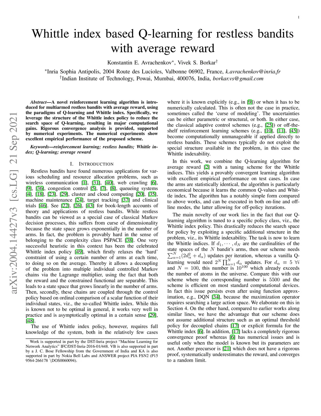 A novel reinforcement learning algorithm is introduced for multiarmed restless bandits with average reward, using the paradigms of Q-learning and Whittle index. Specifically, we leverage the structure of the Whittle index policy to reduce the search space of Q-learning, resulting in major computational gains. Rigorous convergence analysis is provided, supported by numerical experiments. The numerical experiments show excellent empirical performance of the proposed scheme.