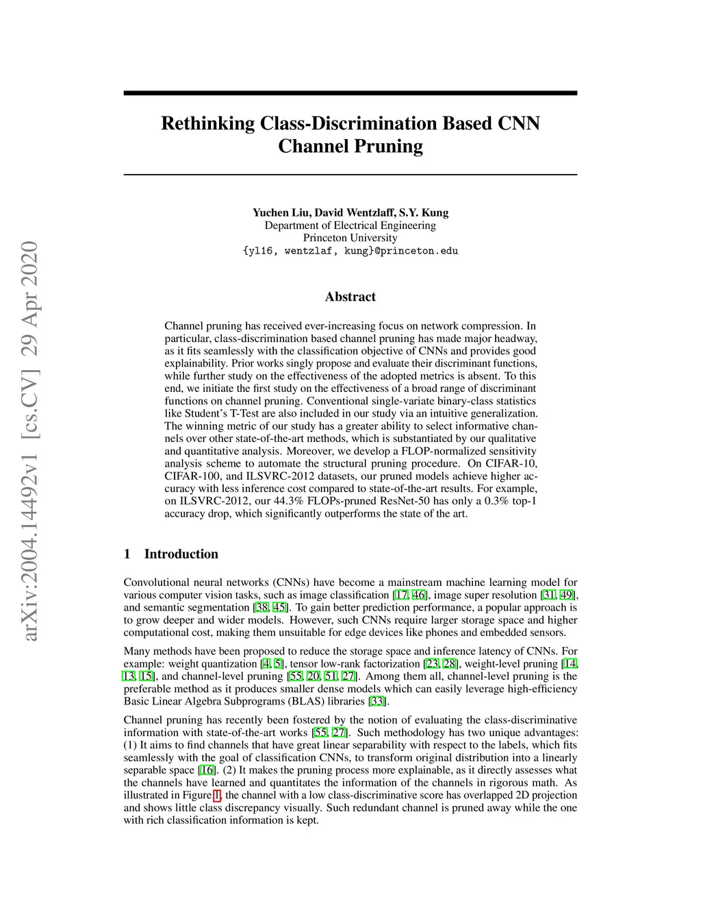 Channel pruning has received ever-increasing focus on network compression. In particular, class-discrimination based channel pruning has made major headway, as it fits seamlessly with the classification objective of CNNs and provides good explainability. Prior works singly propose and evaluate their discriminant functions, while further study on the effectiveness of the adopted metrics is absent. To this end, we initiate the first study on the effectiveness of a broad range of discriminant functions on channel pruning. Conventional single-variate binary-class statistics like Student's T-Test are also included in our study via an intuitive generalization. The winning metric of our study has a greater ability to select informative channels over other state-of-the-art methods, which is substantiated by our qualitative and quantitative analysis. Moreover, we develop a FLOP-normalized sensitivity analysis scheme to automate the structural pruning procedure. On CIFAR-10, CIFAR-100, and ILSVRC-2012 datasets, our pruned models achieve higher accuracy with less inference cost compared to state-of-the-art results. For example, on ILSVRC-2012, our 44.3% FLOPs-pruned ResNet-50 has only a 0.3% top-1 accuracy drop, which significantly outperforms the state of the art.