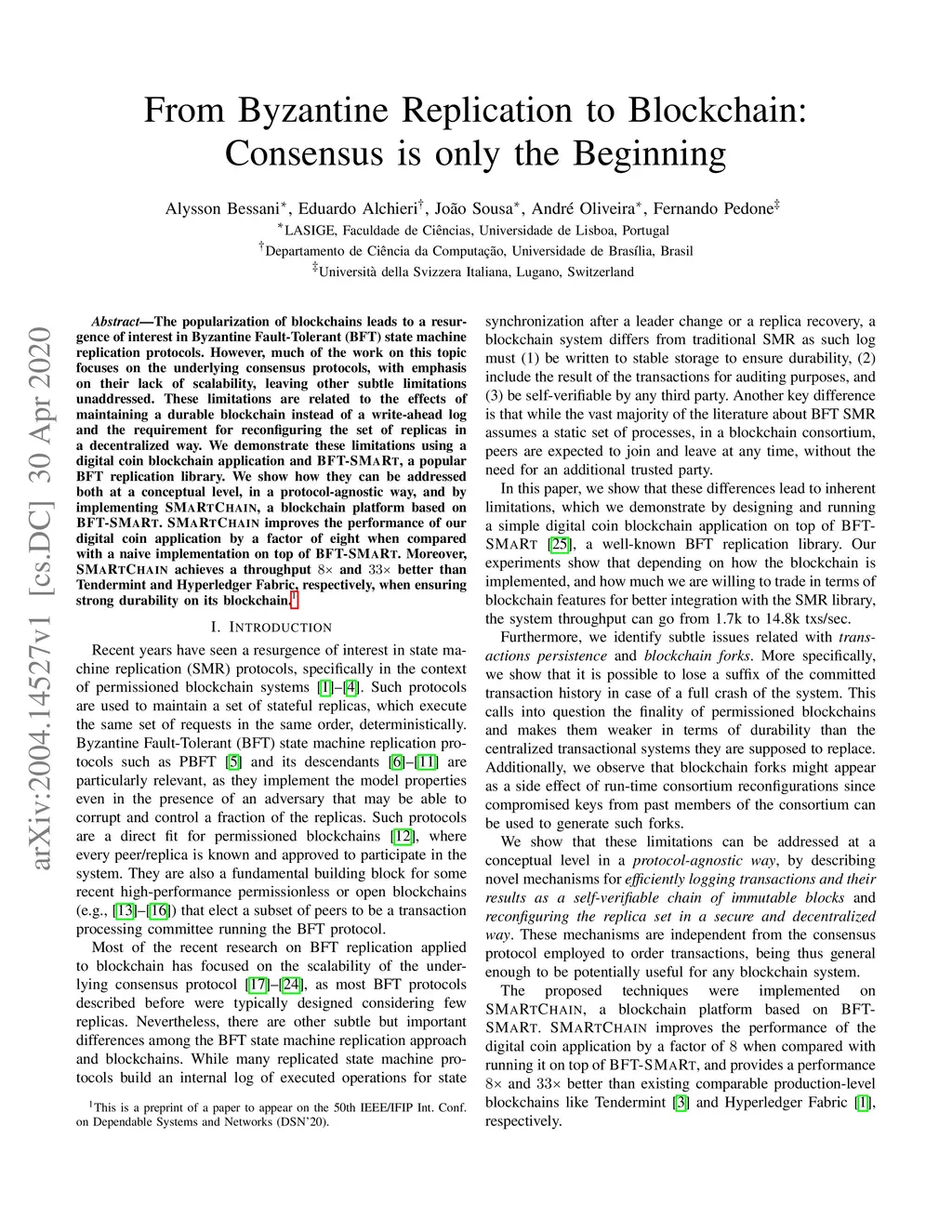 The popularization of blockchains leads to a resurgence of interest in Byzantine Fault-Tolerant (BFT) state machine replication protocols. However, much of the work on this topic focuses on the underlying consensus protocols, with emphasis on their lack of scalability, leaving other subtle limitations unaddressed. These limitations are related to the effects of maintaining a durable blockchain instead of a write-ahead log and the requirement for reconfiguring the set of replicas in a decentralized way. We demonstrate these limitations using a digital coin blockchain application and BFT-SMaRt, a popular BFT replication library. We show how they can be addressed both at a conceptual level, in a protocol-agnostic way, and by implementing SMaRtChain, a blockchain platform based on BFT-SMaRt. SMaRtChain improves the performance of our digital coin application by a factor of eight when compared with a naive implementation on top of BFT-SMaRt. Moreover, SMaRtChain achieves a throughput and better than Tendermint and Hyperledger Fabric, respectively, when ensuring strong durability on its blockchain.