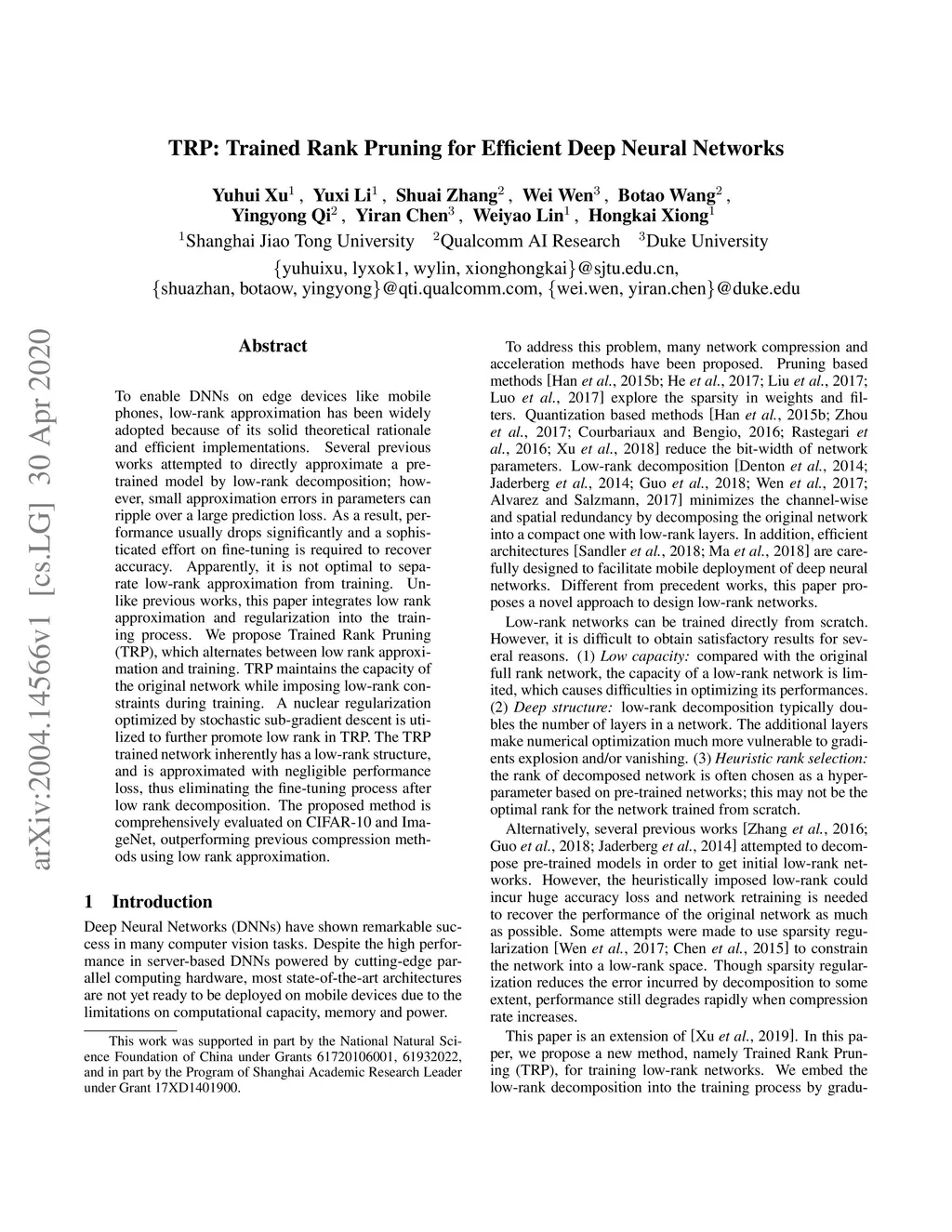 TRP: Trained Rank Pruning for Efficient Deep Neural Networks