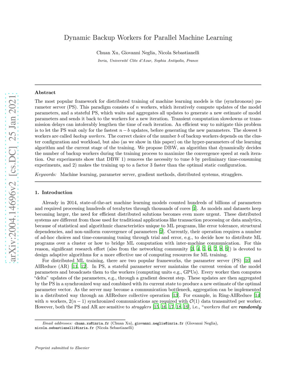 Dynamic backup workers for parallel machine learning